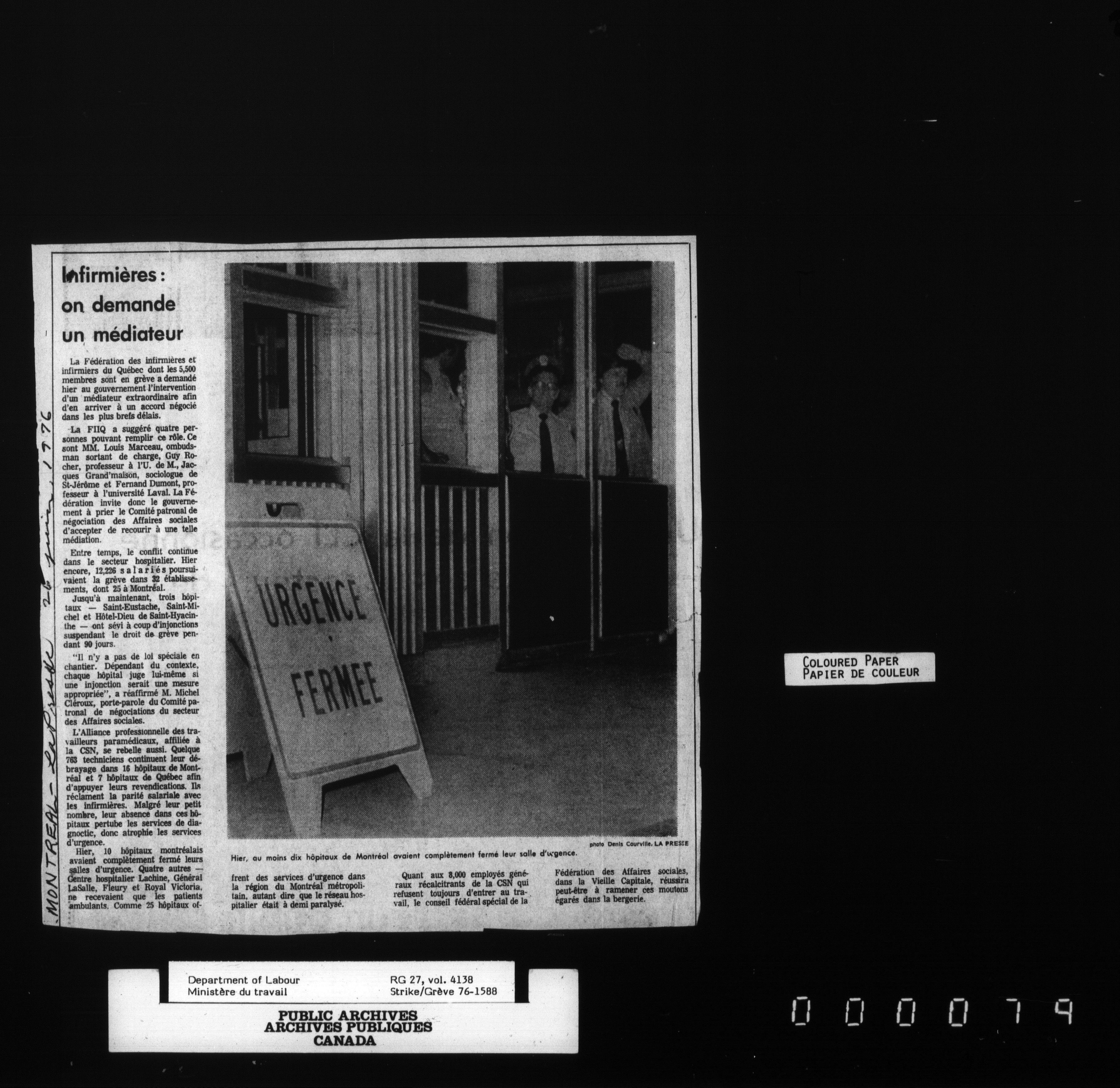 Department of Labour, Economics and Research Branch : Strikes and lockout files - 6170