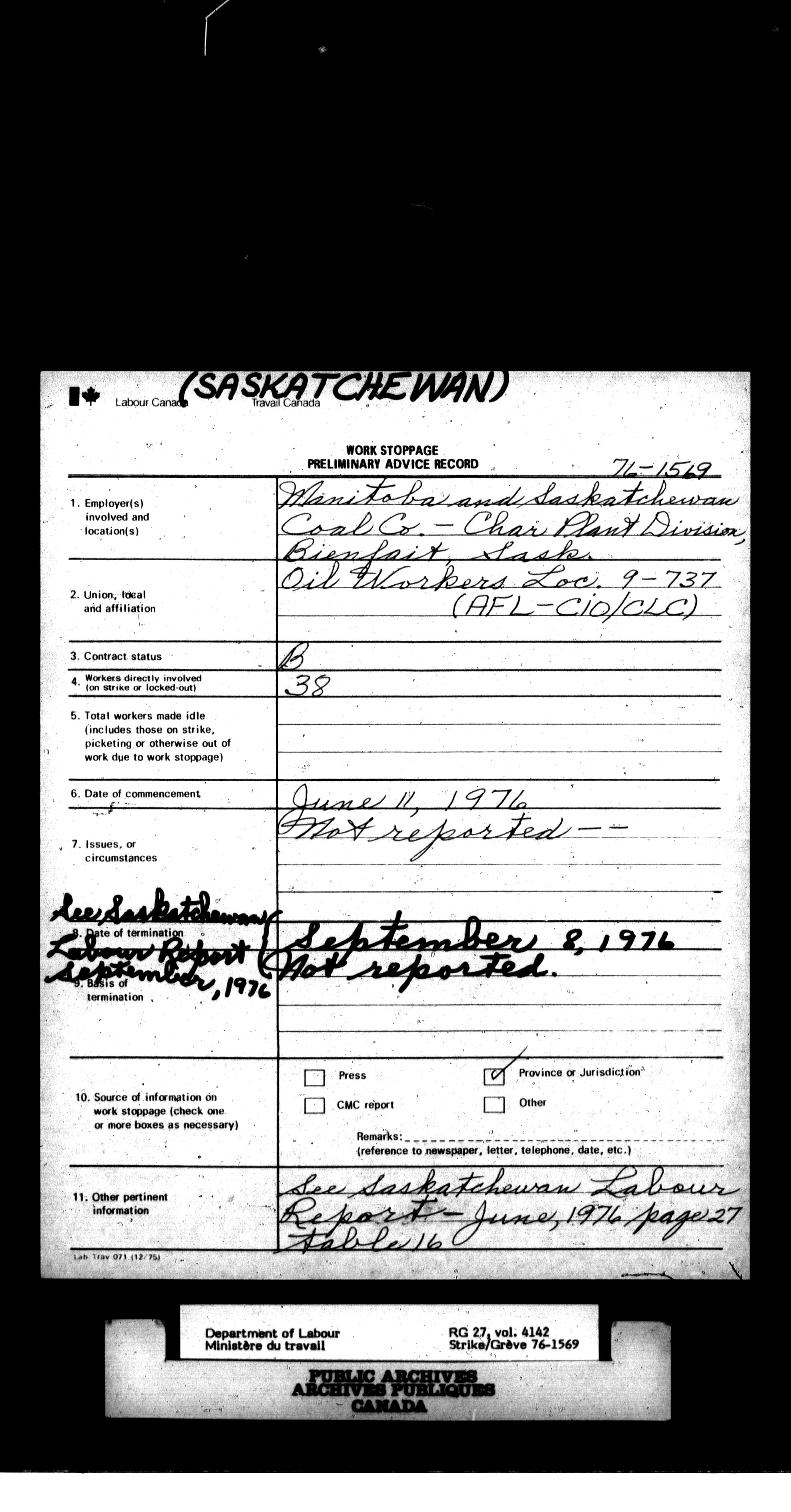 Department of Labour, Economics and Research Branch : Strikes and lockout files - 6171
