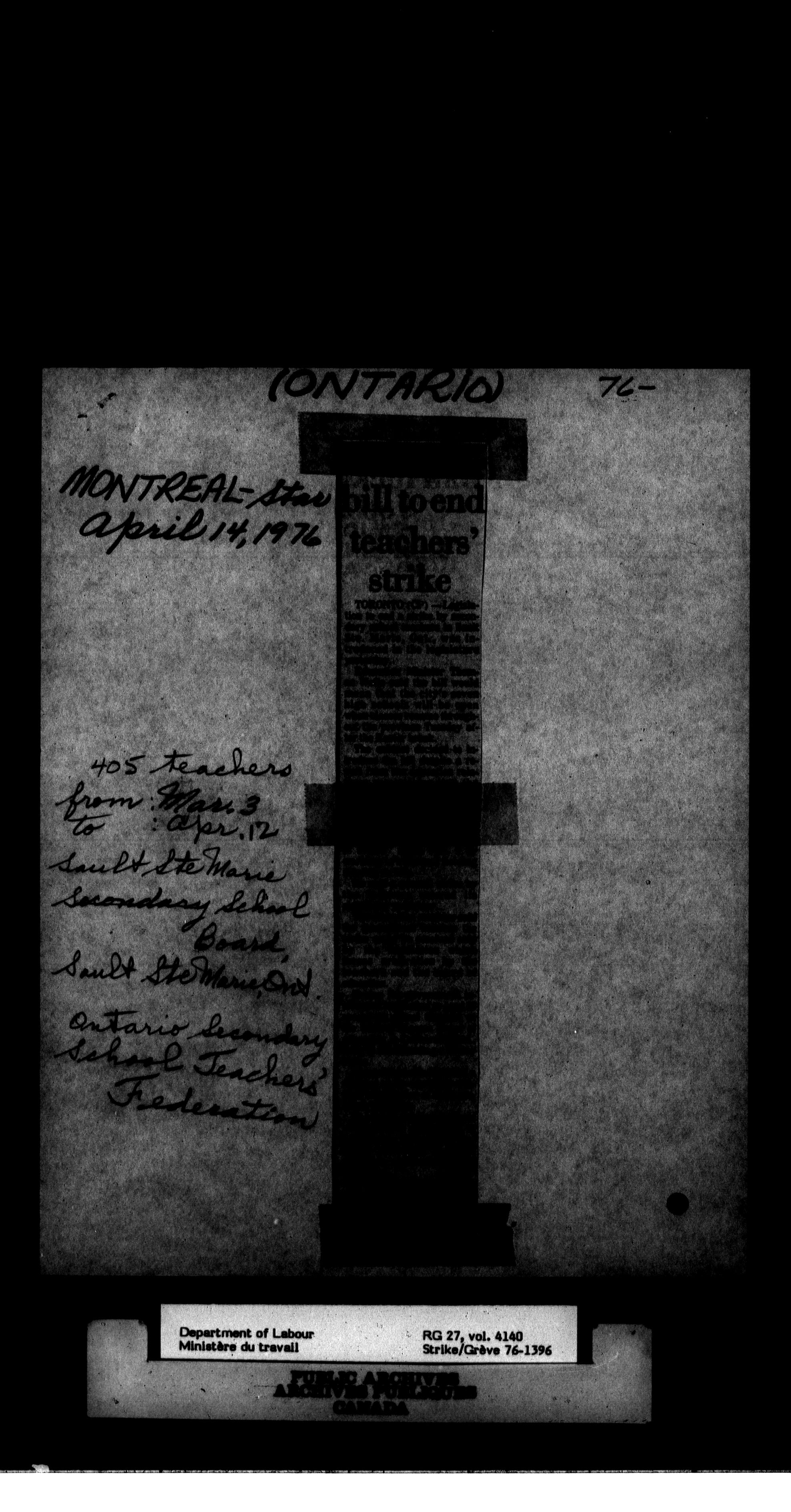 Department of Labour, Economics and Research Branch : Strikes and lockout files - 6171