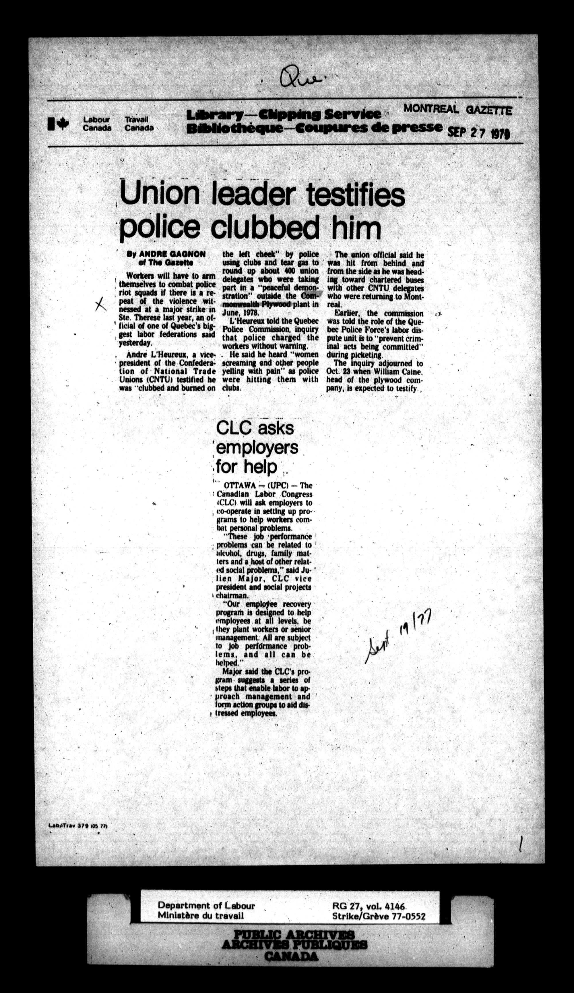 Department of Labour, Economics and Research Branch : Strikes and lockout files - 6174