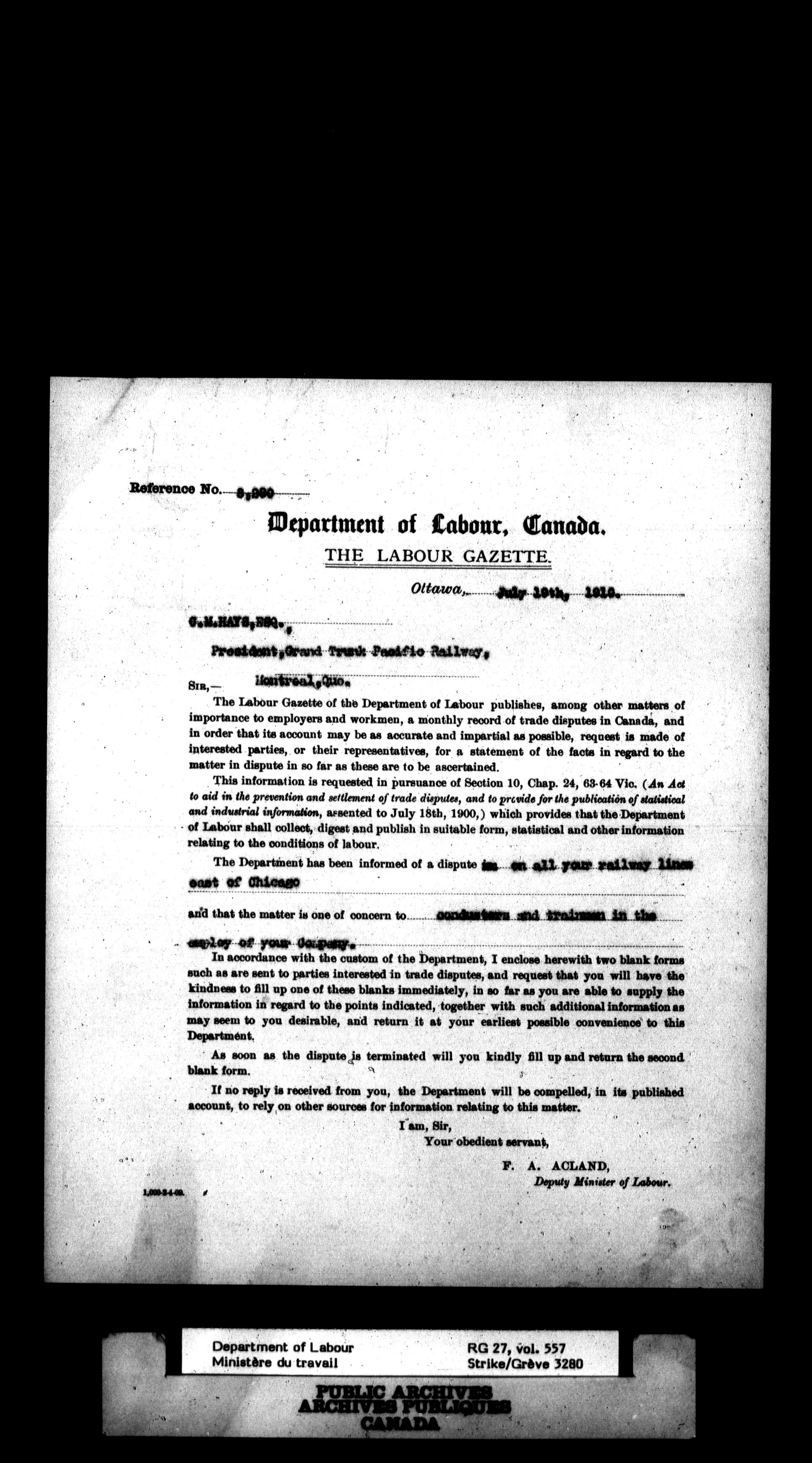 Department of Labour, Economics and Research Branch : Strikes and lockout files - 6175