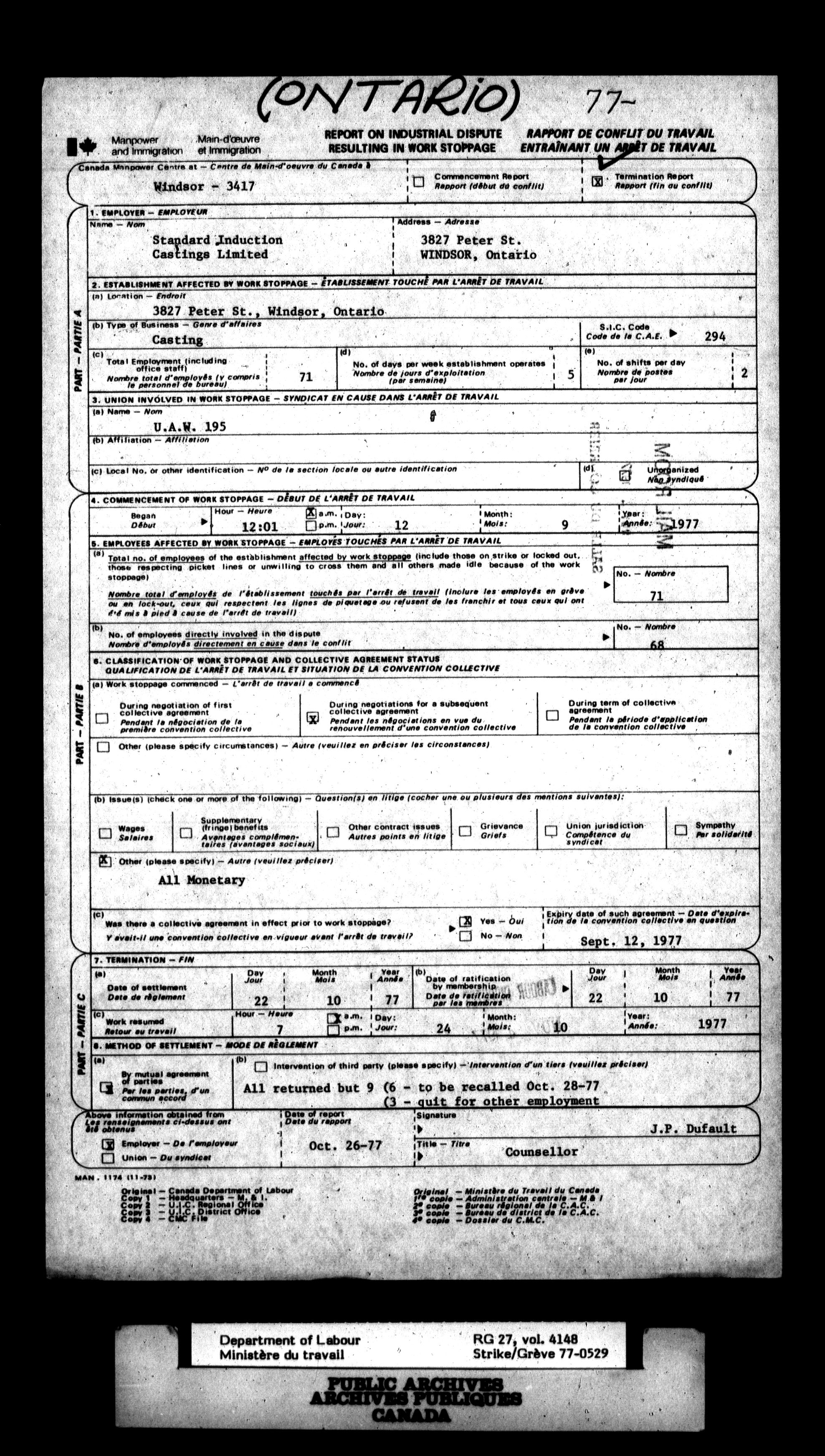 Department of Labour, Economics and Research Branch : Strikes and lockout files - 6175