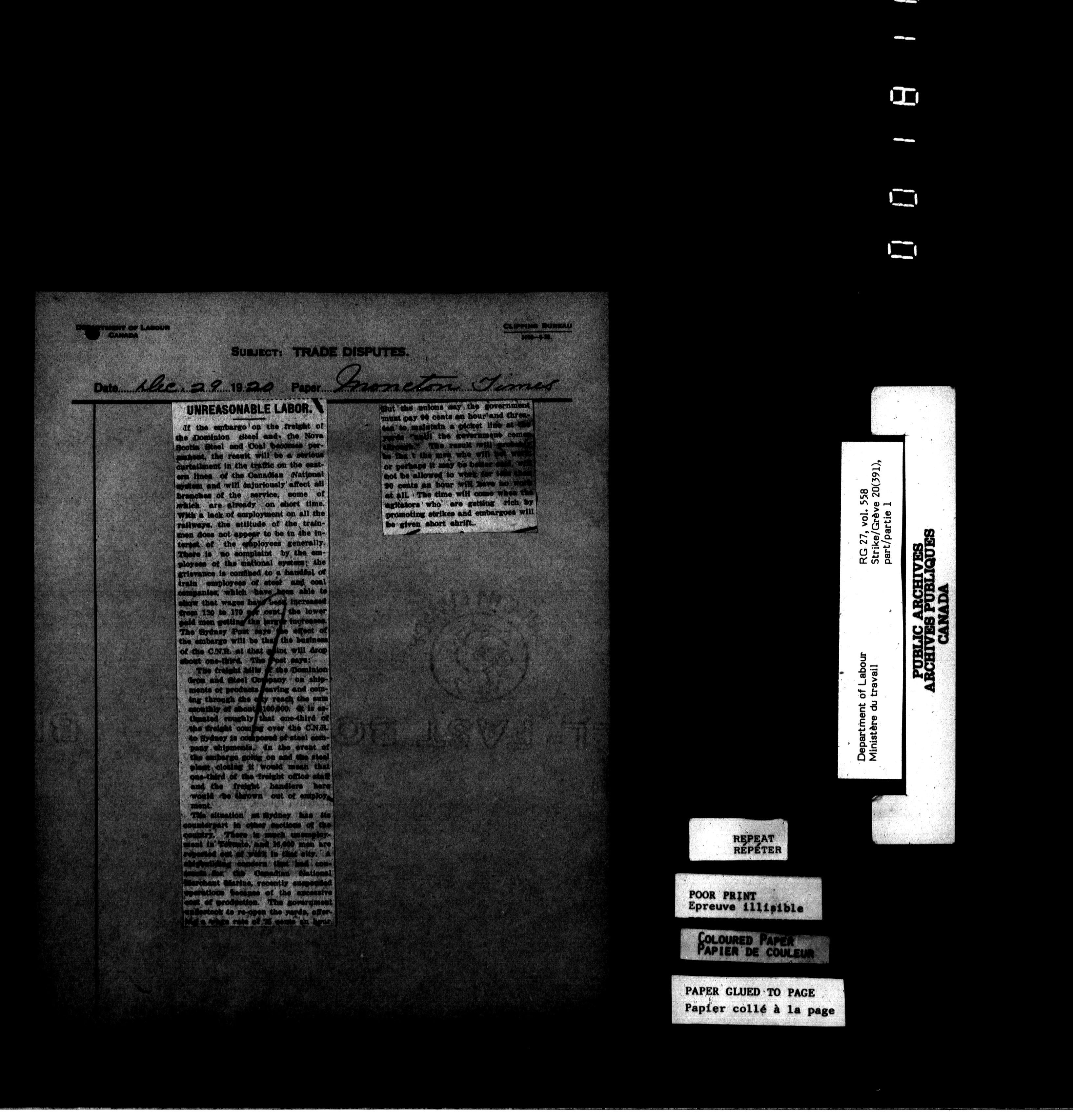 Department of Labour, Economics and Research Branch : Strikes and lockout files - 6176