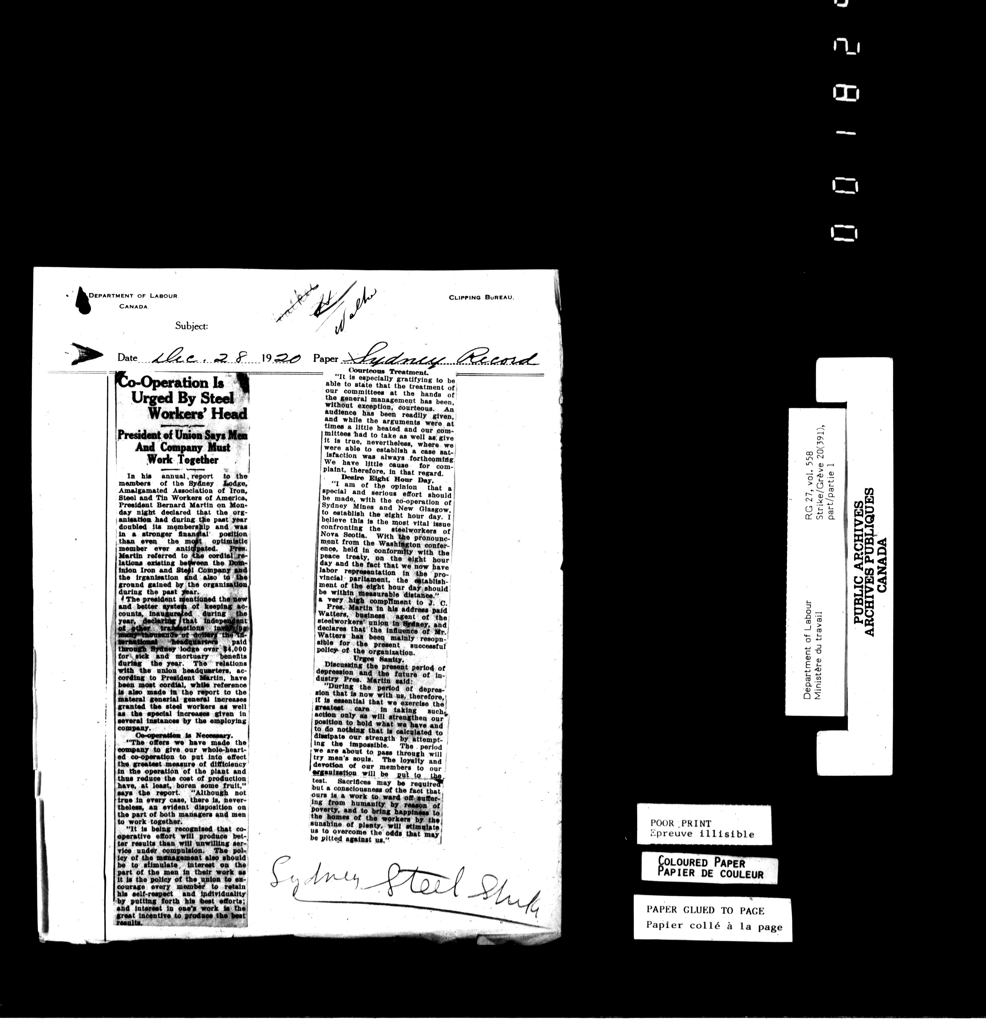Department of Labour, Economics and Research Branch : Strikes and lockout files - 6176