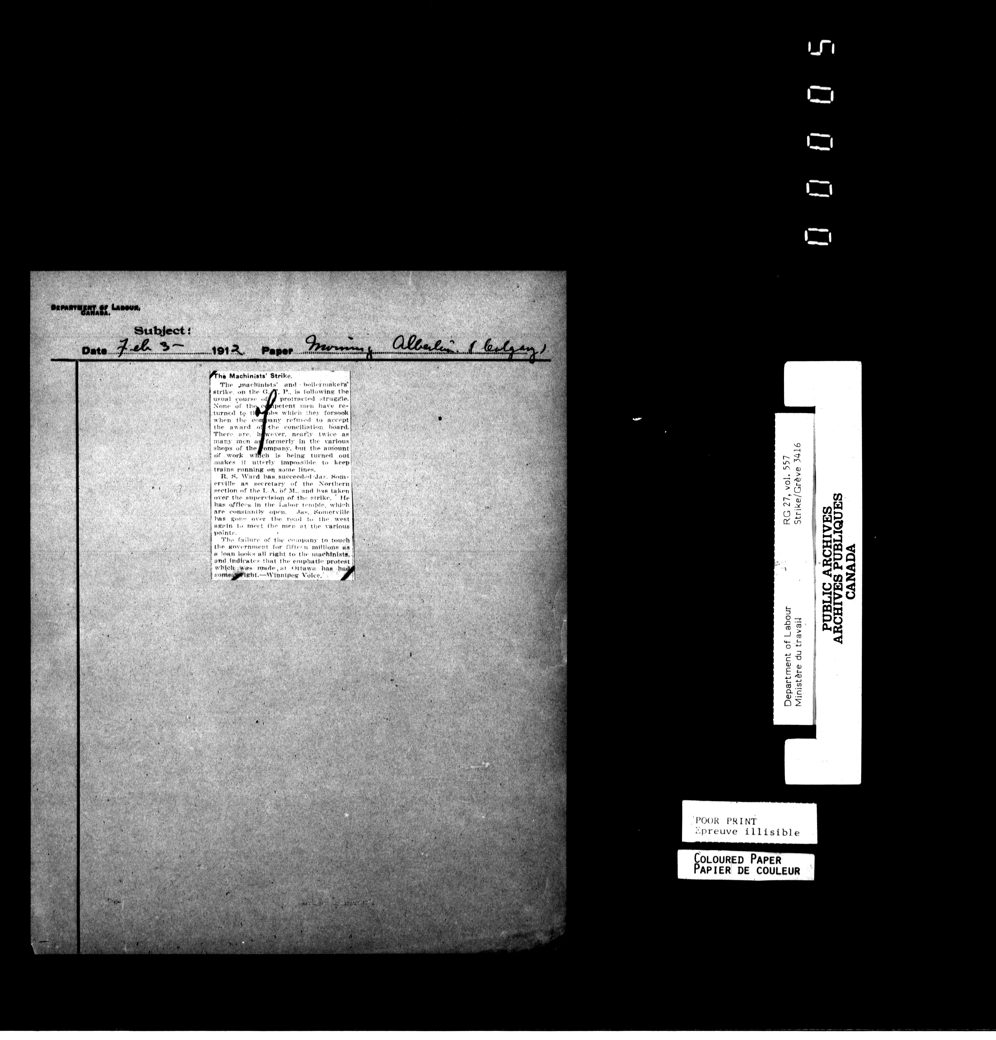 Department of Labour, Economics and Research Branch : Strikes and lockout files - 6176