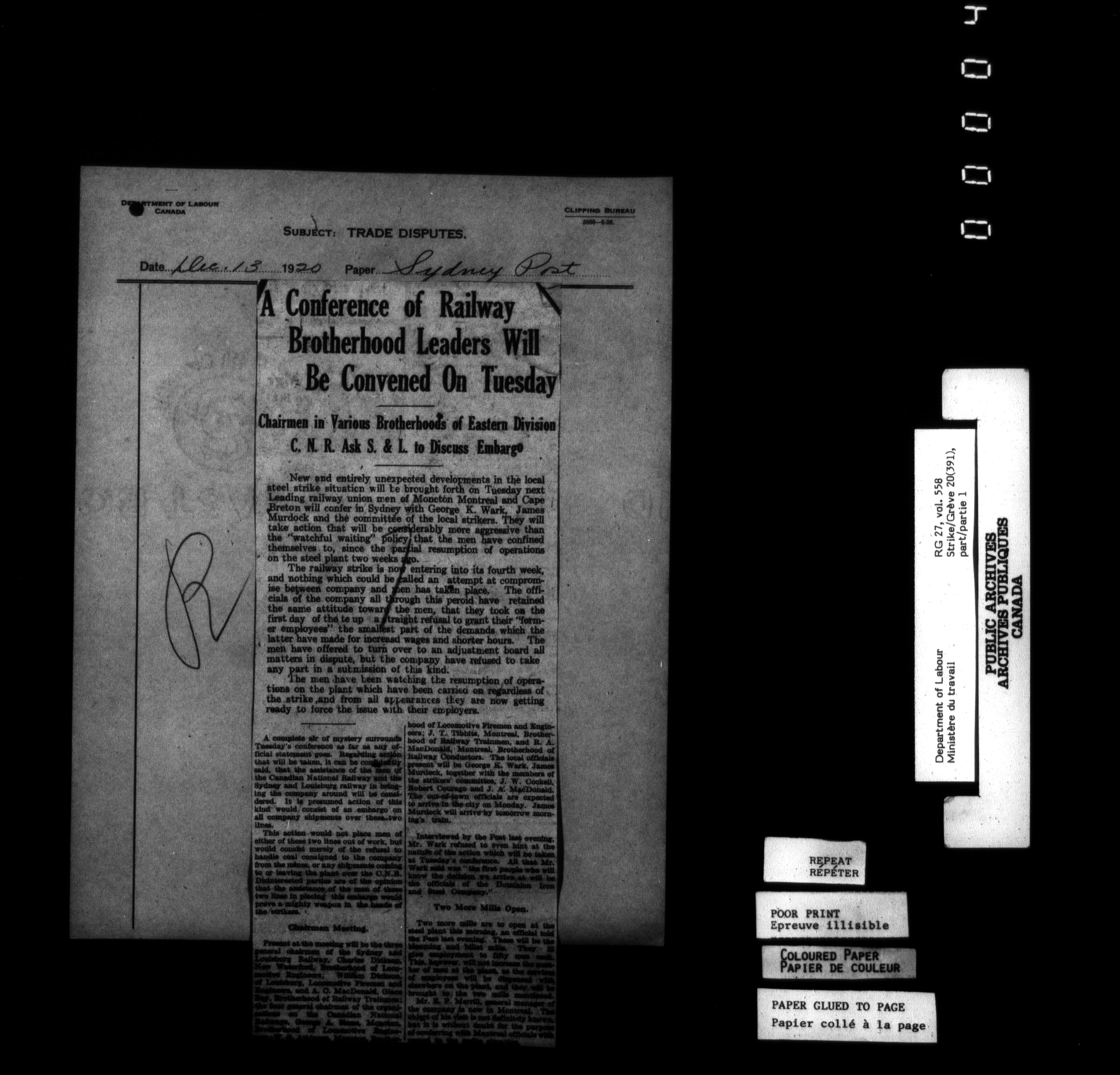 Department of Labour, Economics and Research Branch : Strikes and lockout files - 6177