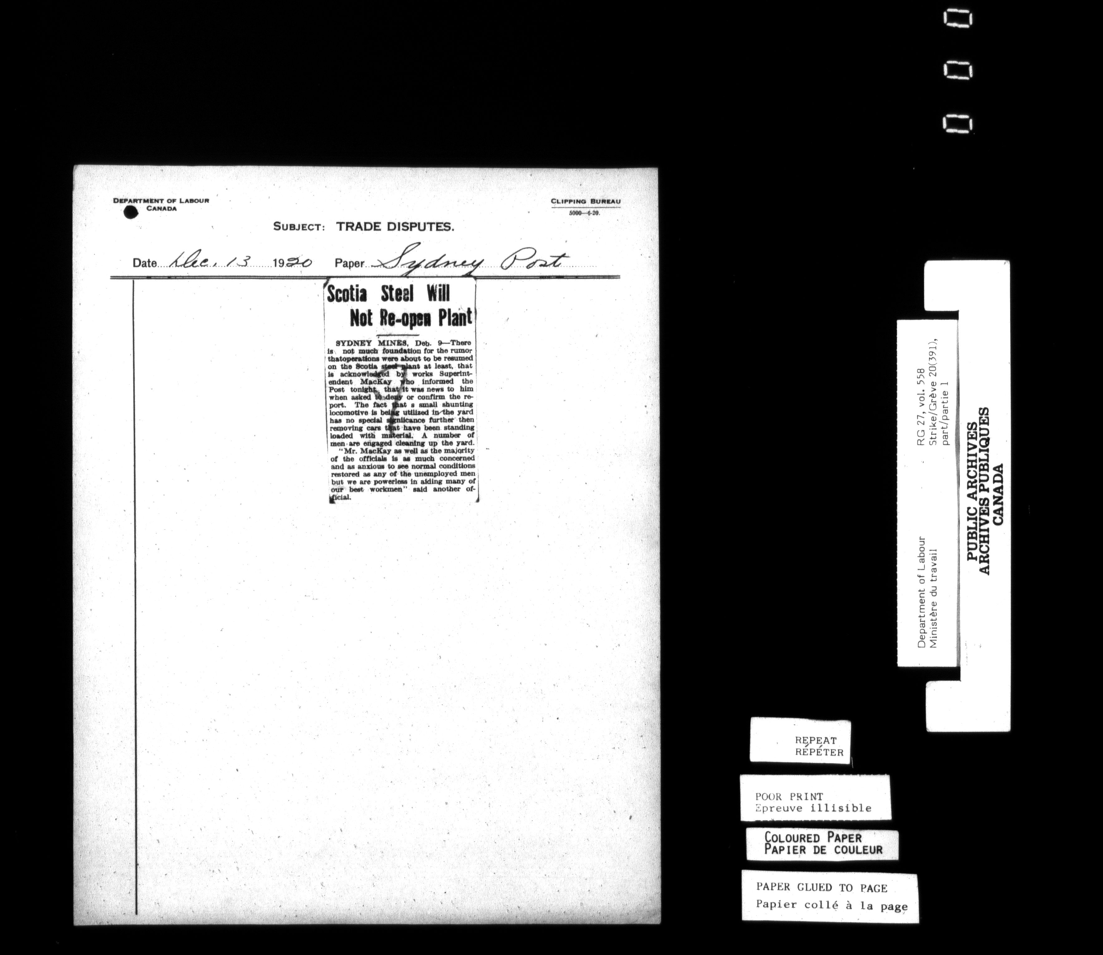 Department of Labour, Economics and Research Branch : Strikes and lockout files - 6177