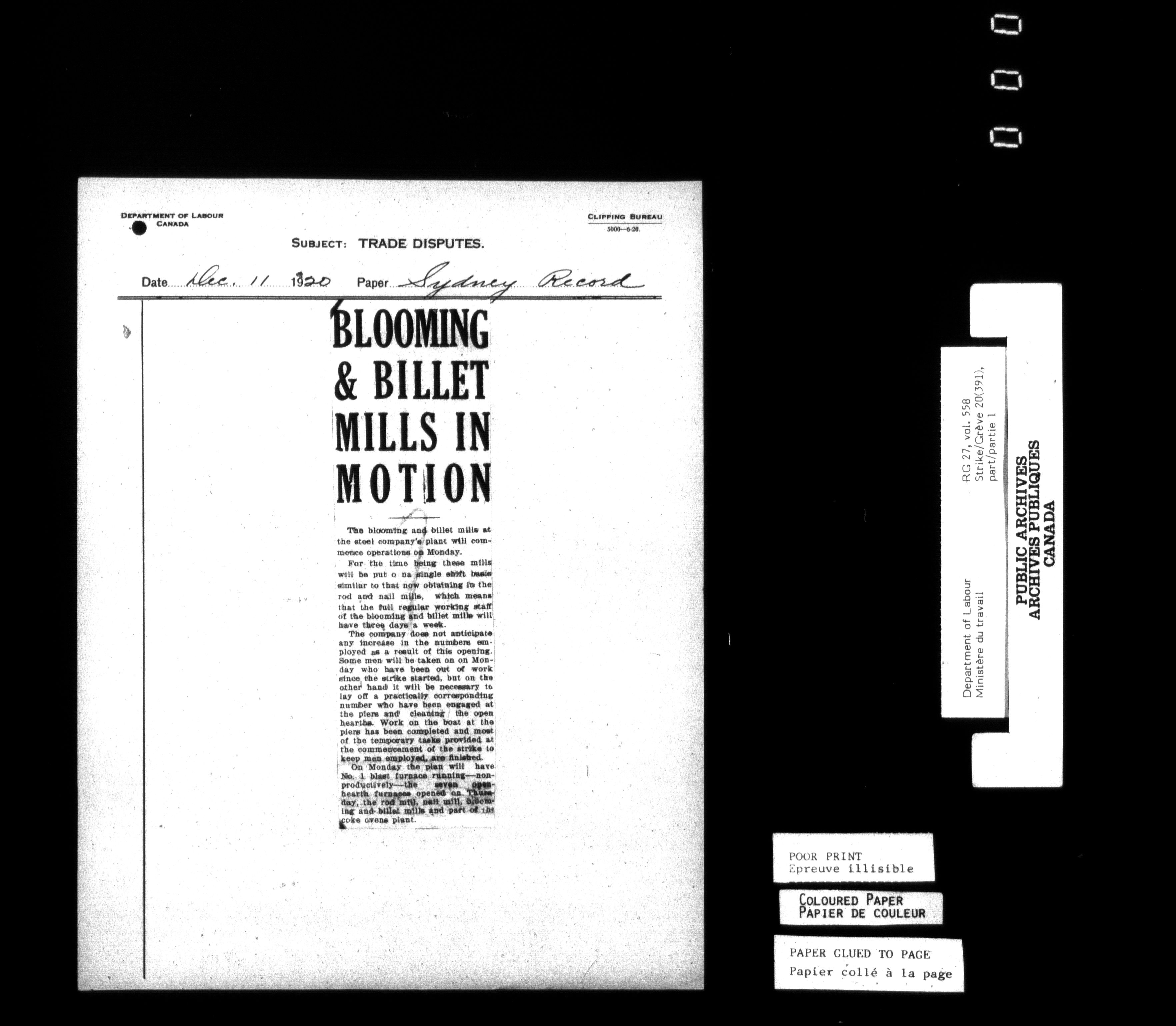 Department of Labour, Economics and Research Branch : Strikes and lockout files - 6177
