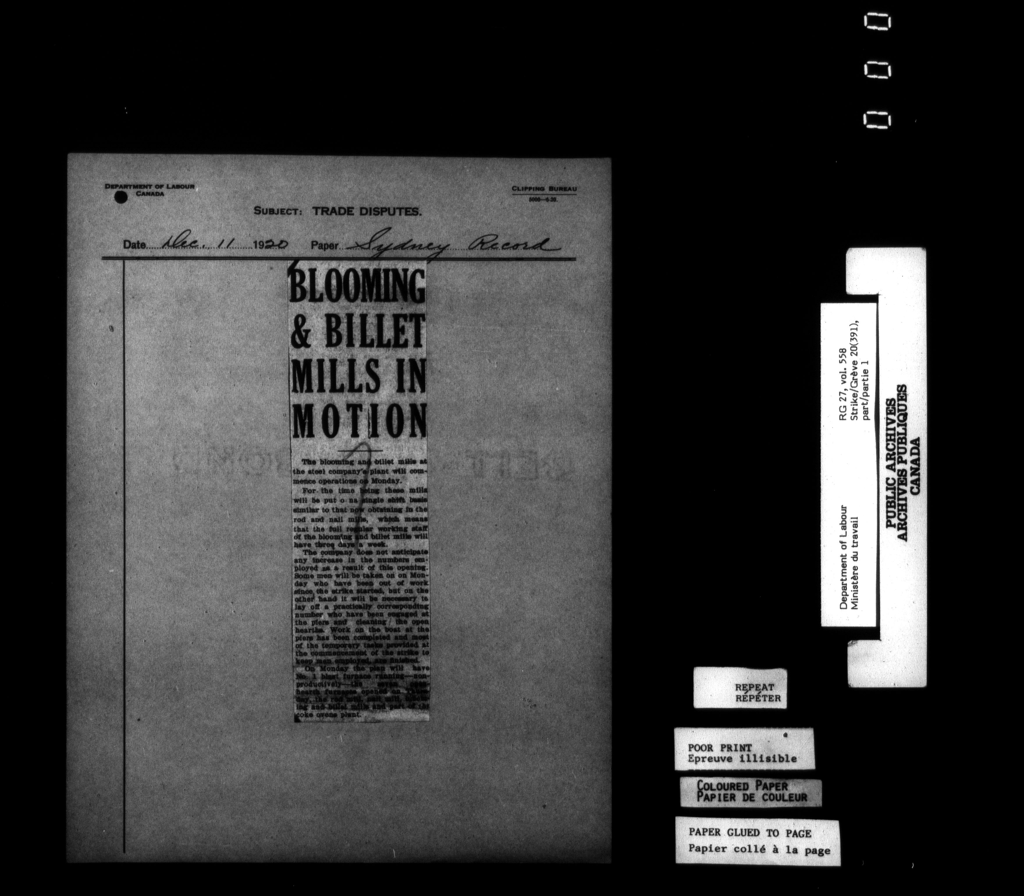 Department of Labour, Economics and Research Branch : Strikes and lockout files - 6177