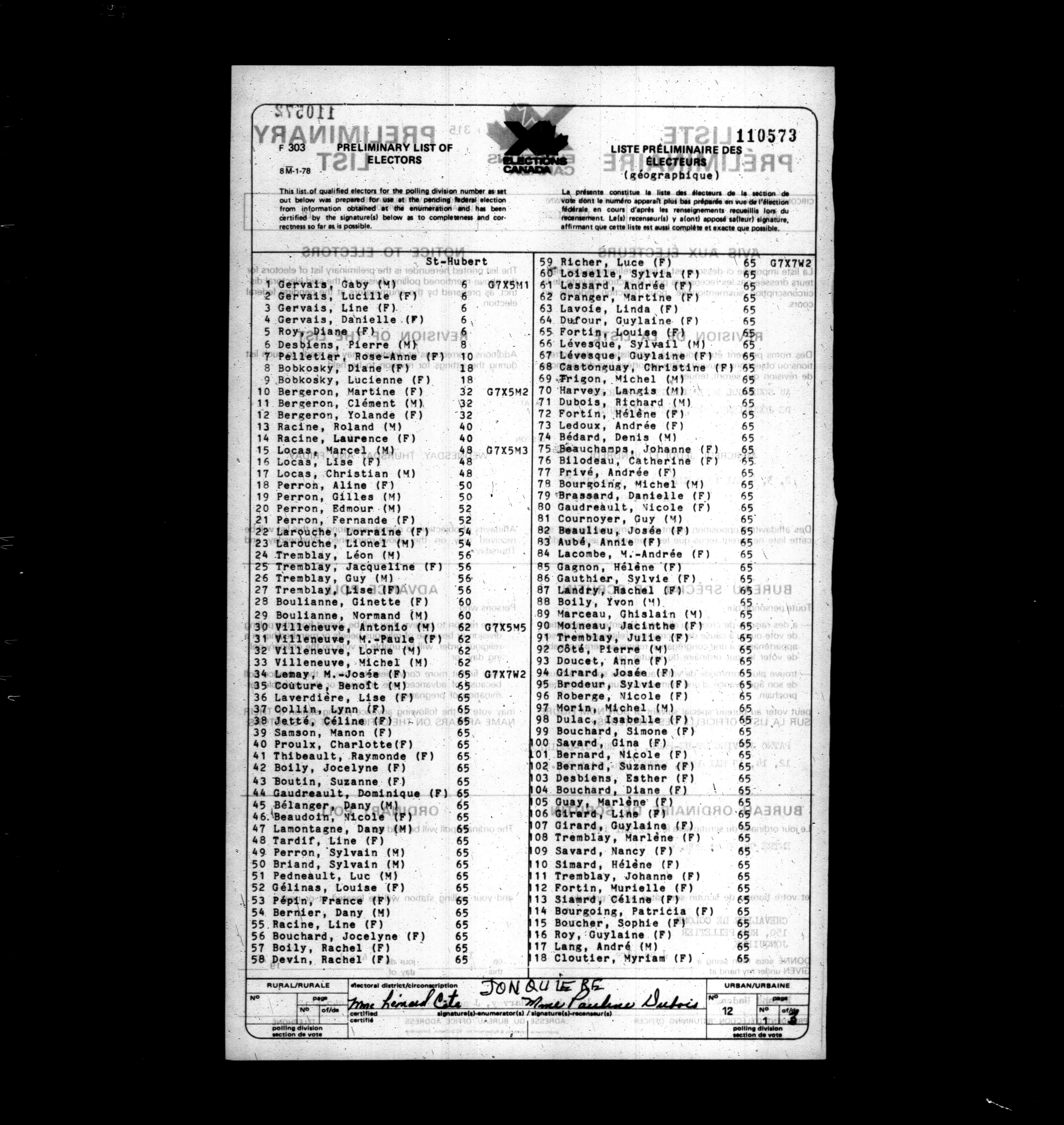 Voters' lists Québec, 1979 - 618