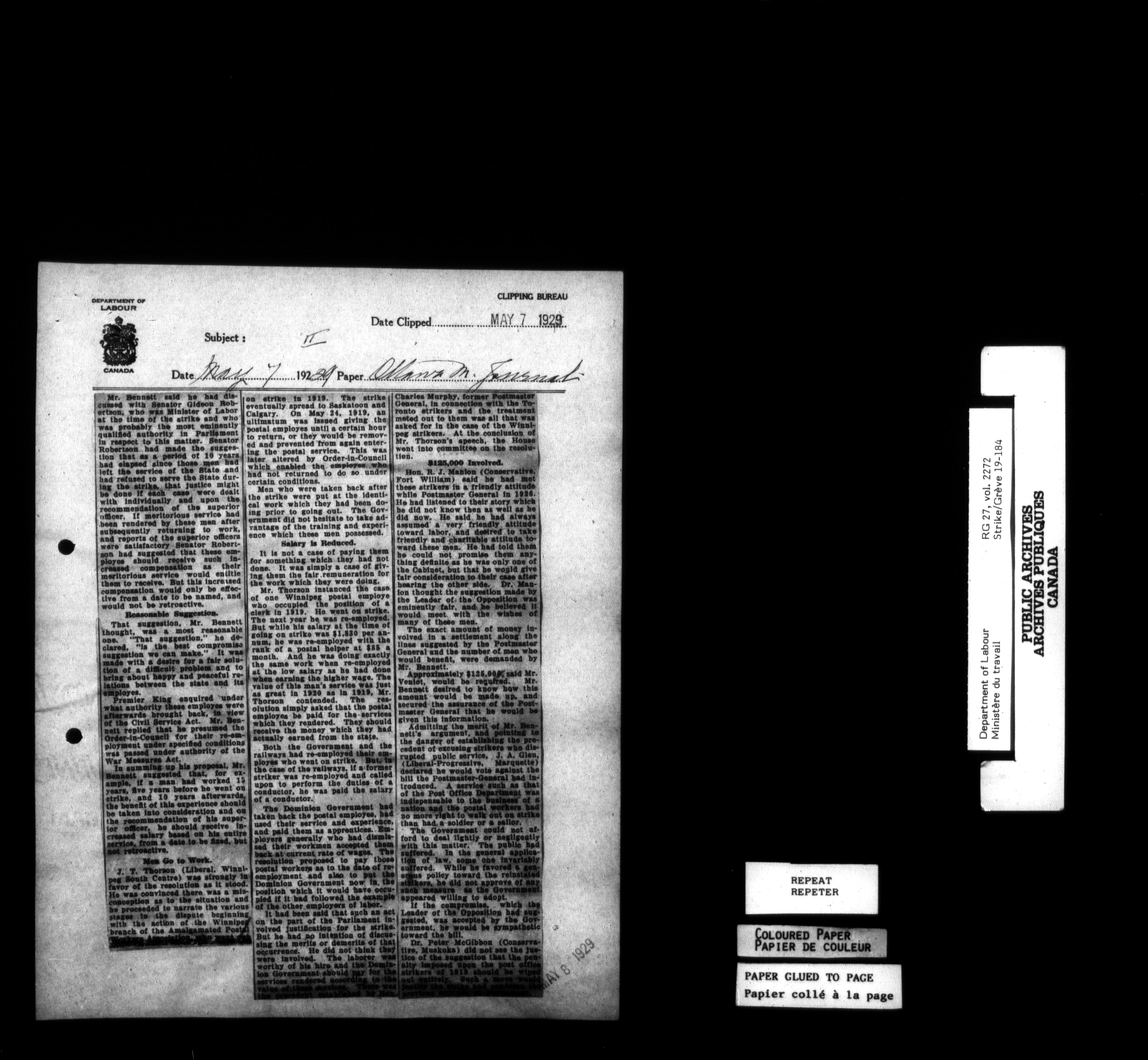 Department of Labour, Economics and Research Branch : Strikes and lockout files - 6180