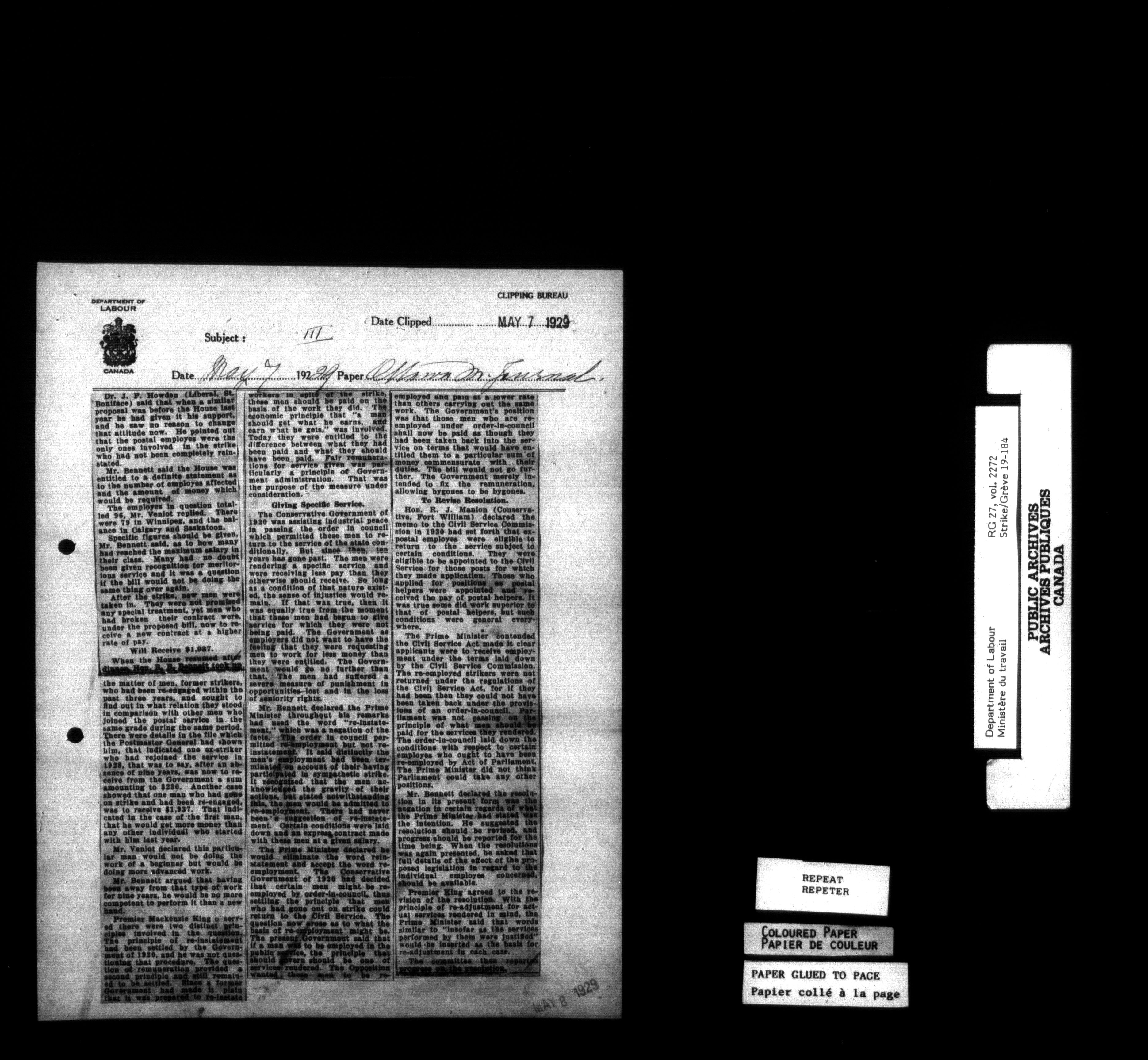 Department of Labour, Economics and Research Branch : Strikes and lockout files - 6180
