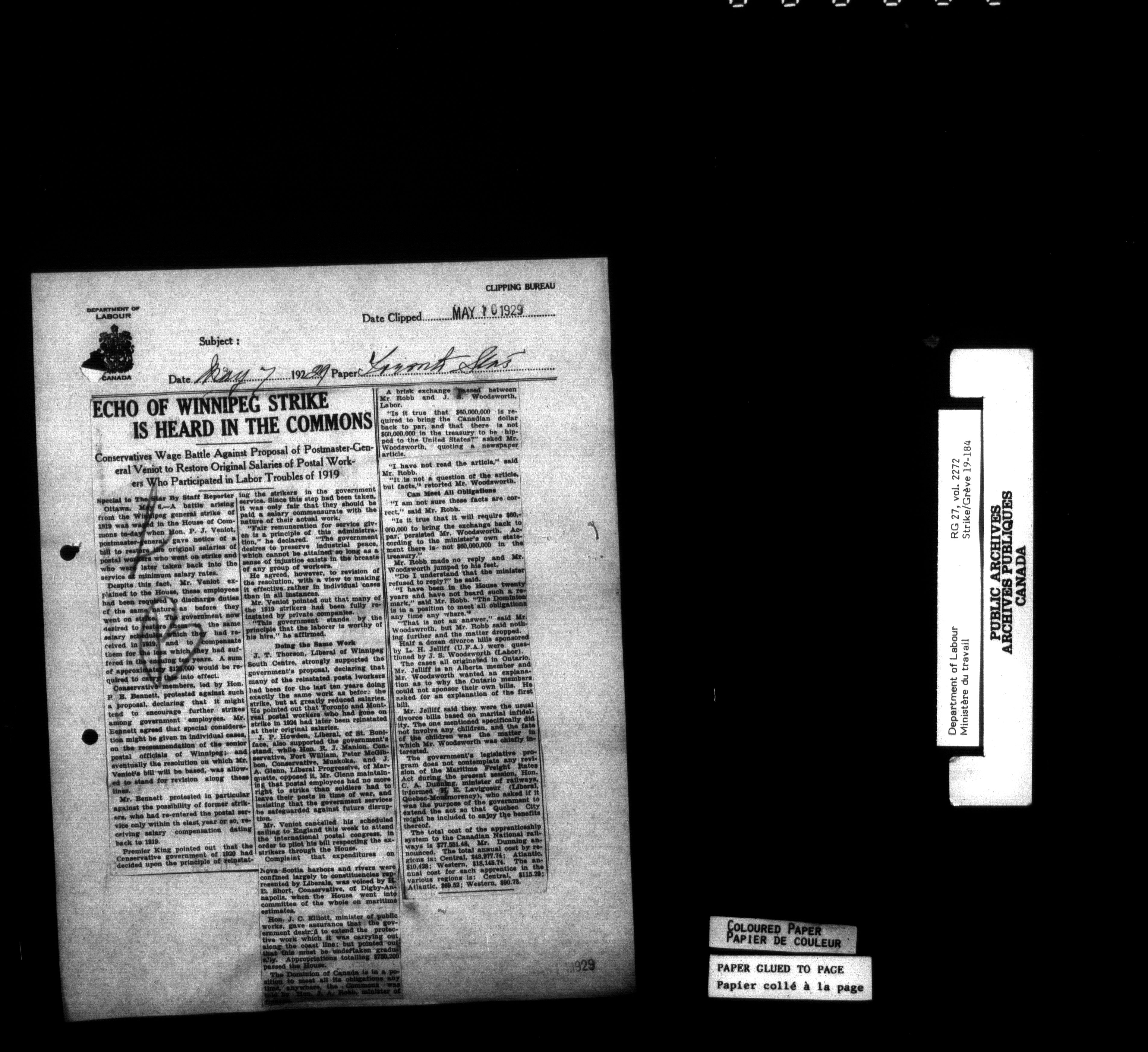 Department of Labour, Economics and Research Branch : Strikes and lockout files - 6180