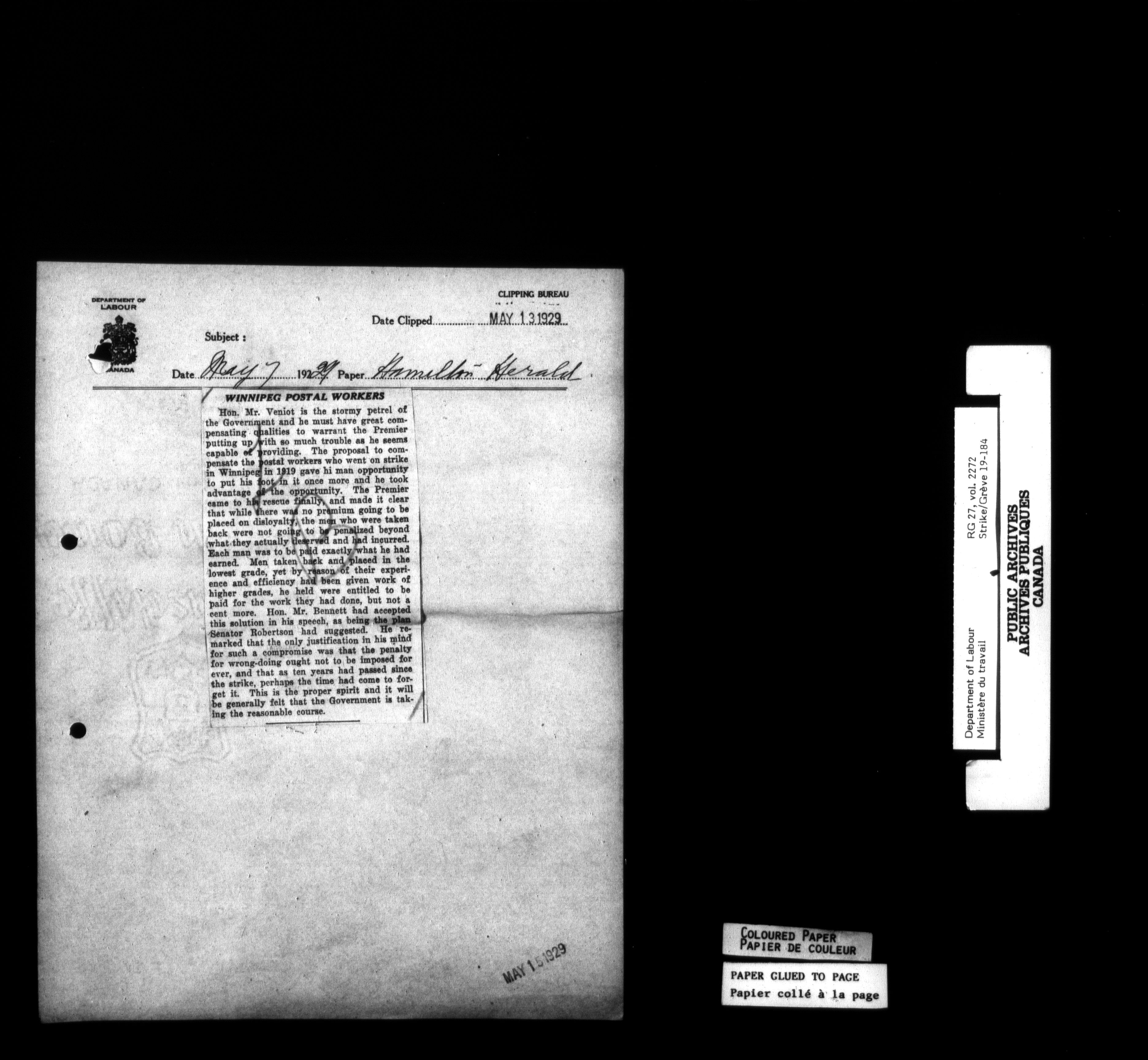 Department of Labour, Economics and Research Branch : Strikes and lockout files - 6180