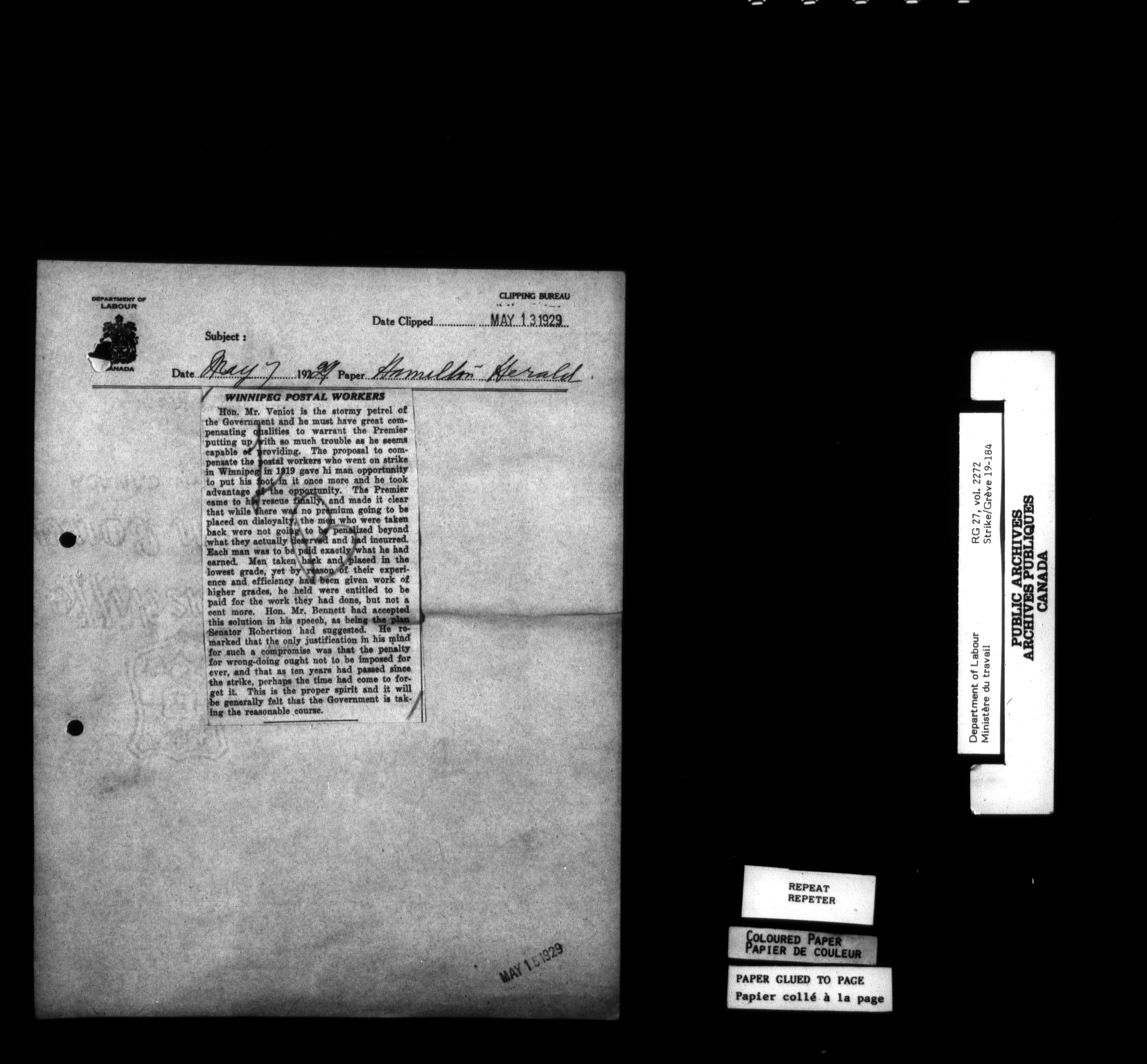Department of Labour, Economics and Research Branch : Strikes and lockout files - 6180