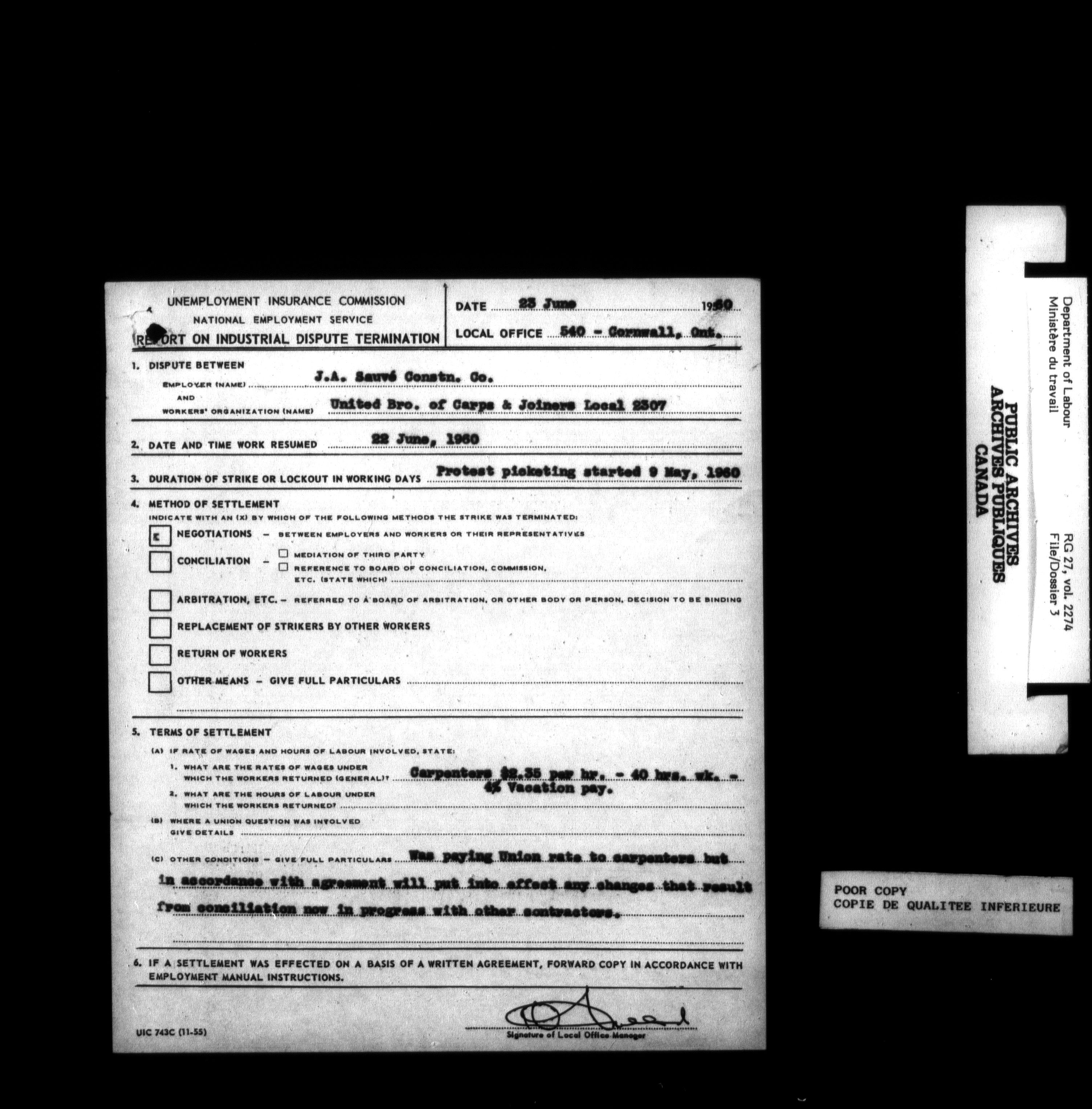 Department of Labour, Economics and Research Branch : Strikes and lockout files : T-6182
