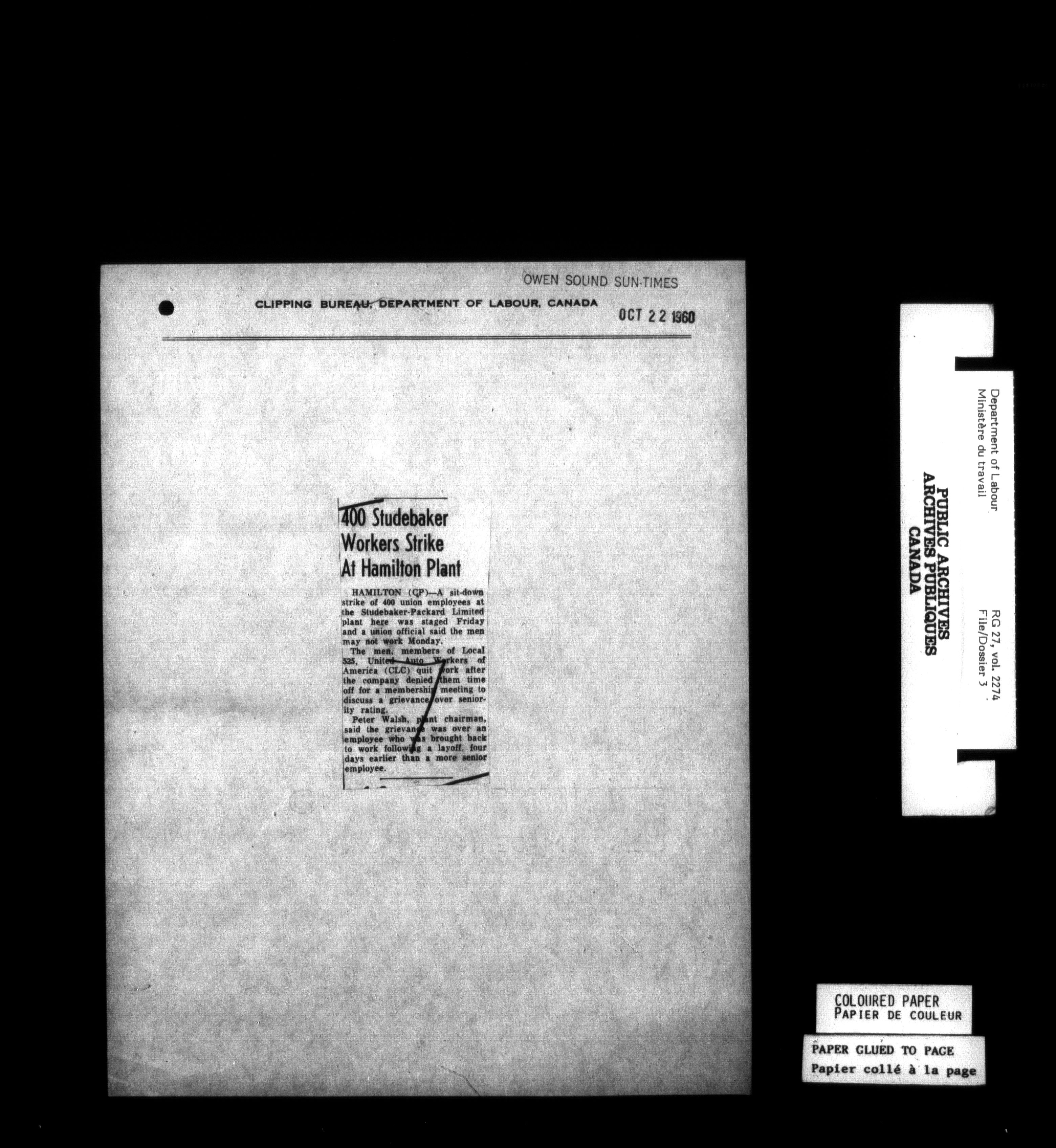 Department of Labour, Economics and Research Branch : Strikes and lockout files - 6182