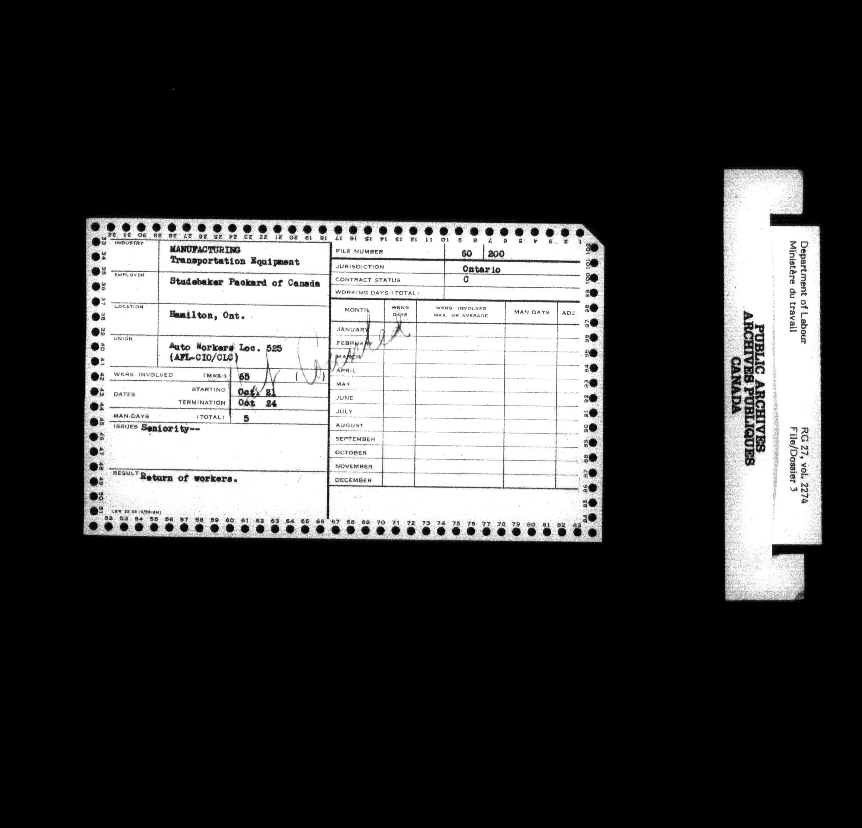 Department of Labour, Economics and Research Branch : Strikes and lockout files - 6182