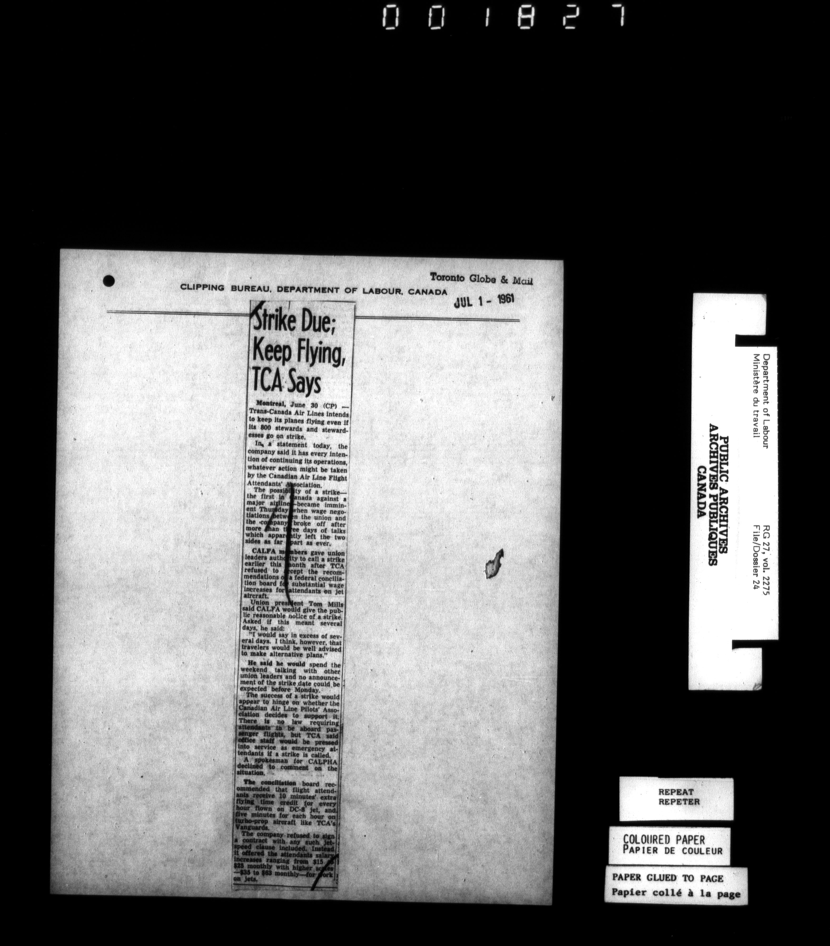 Department of Labour, Economics and Research Branch : Strikes and lockout files - 6183