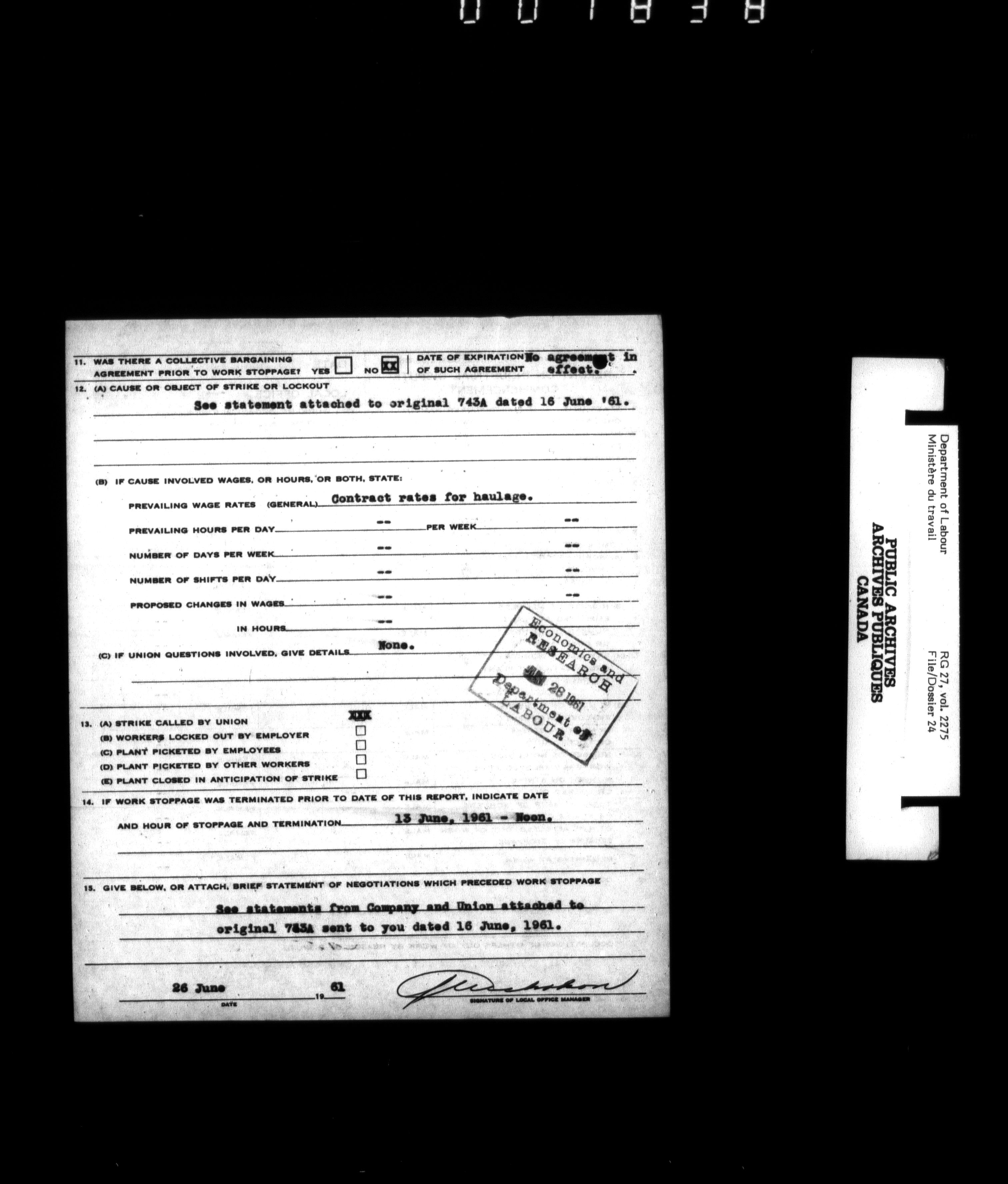 Department of Labour, Economics and Research Branch : Strikes and lockout files - 6183