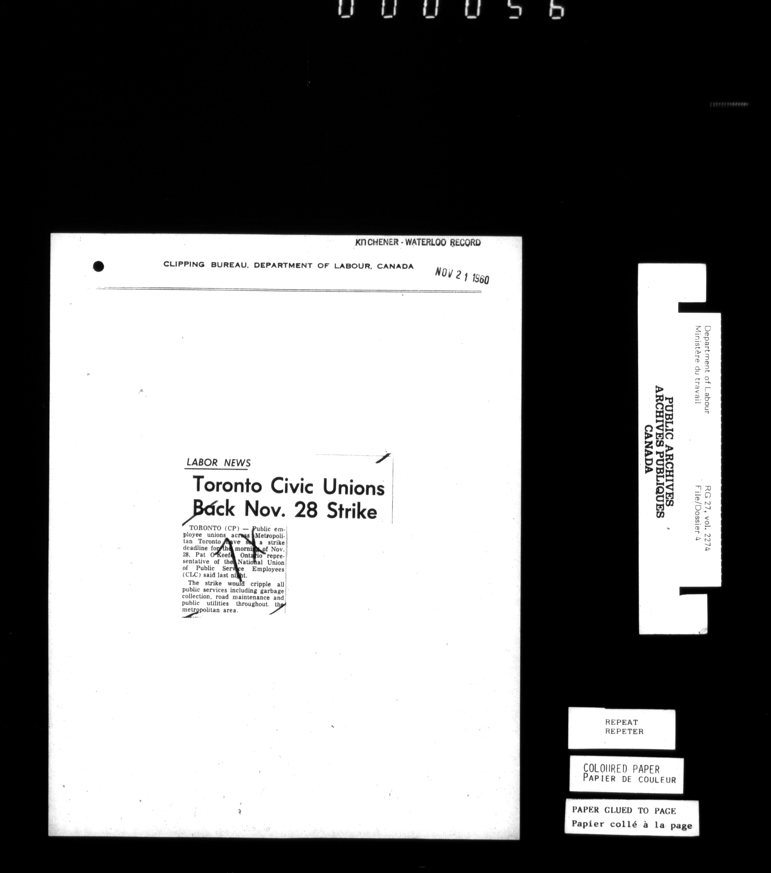Department of Labour, Economics and Research Branch : Strikes and lockout files - 6183
