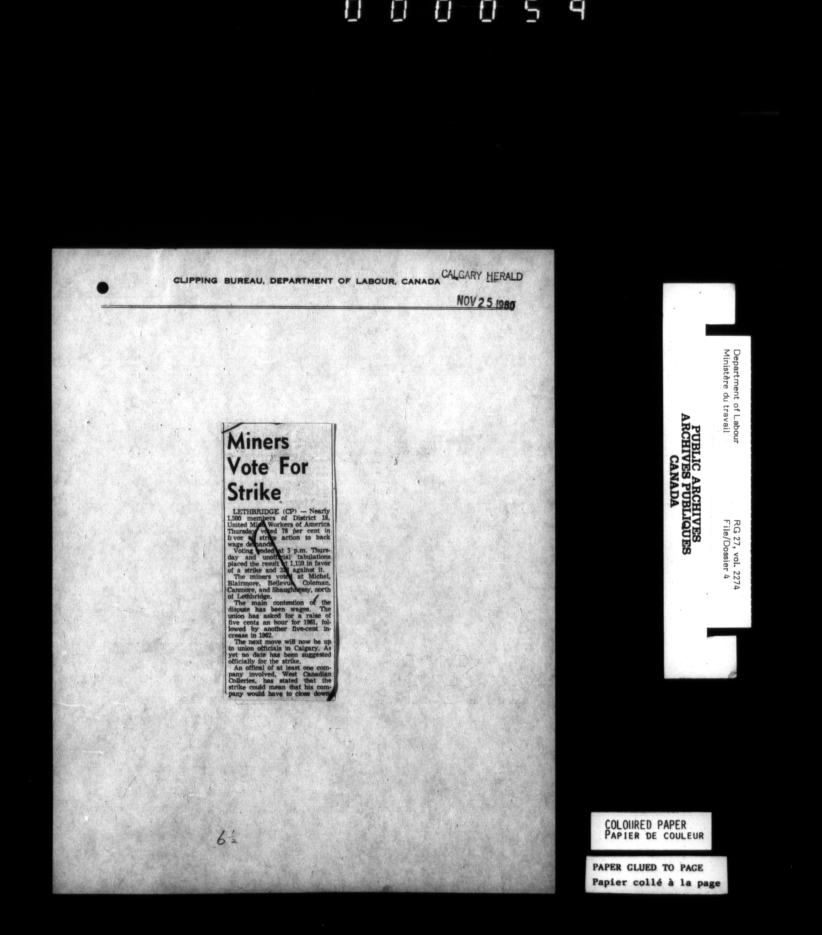 Department of Labour, Economics and Research Branch : Strikes and lockout files - 6183