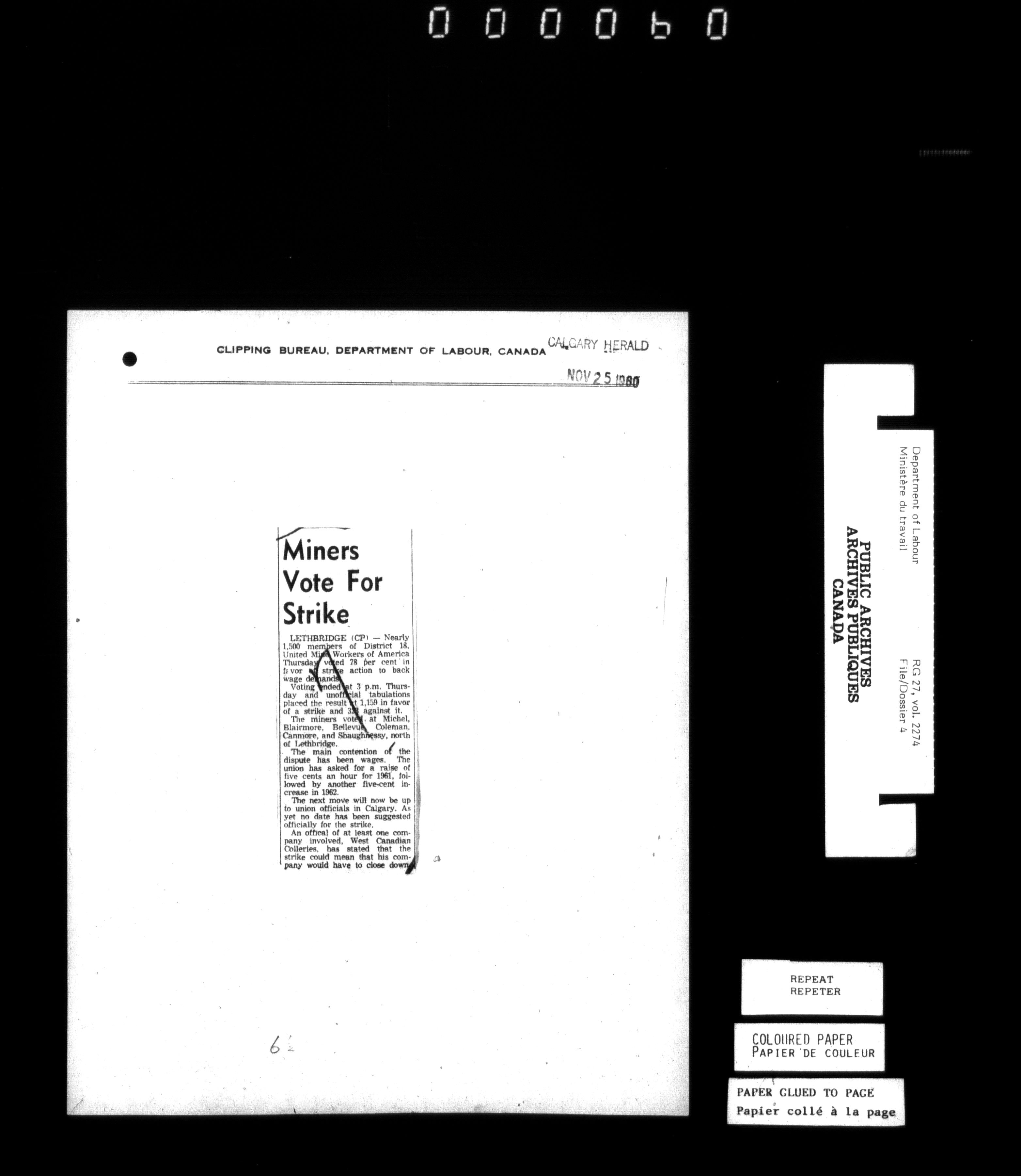 Department of Labour, Economics and Research Branch : Strikes and lockout files - 6183