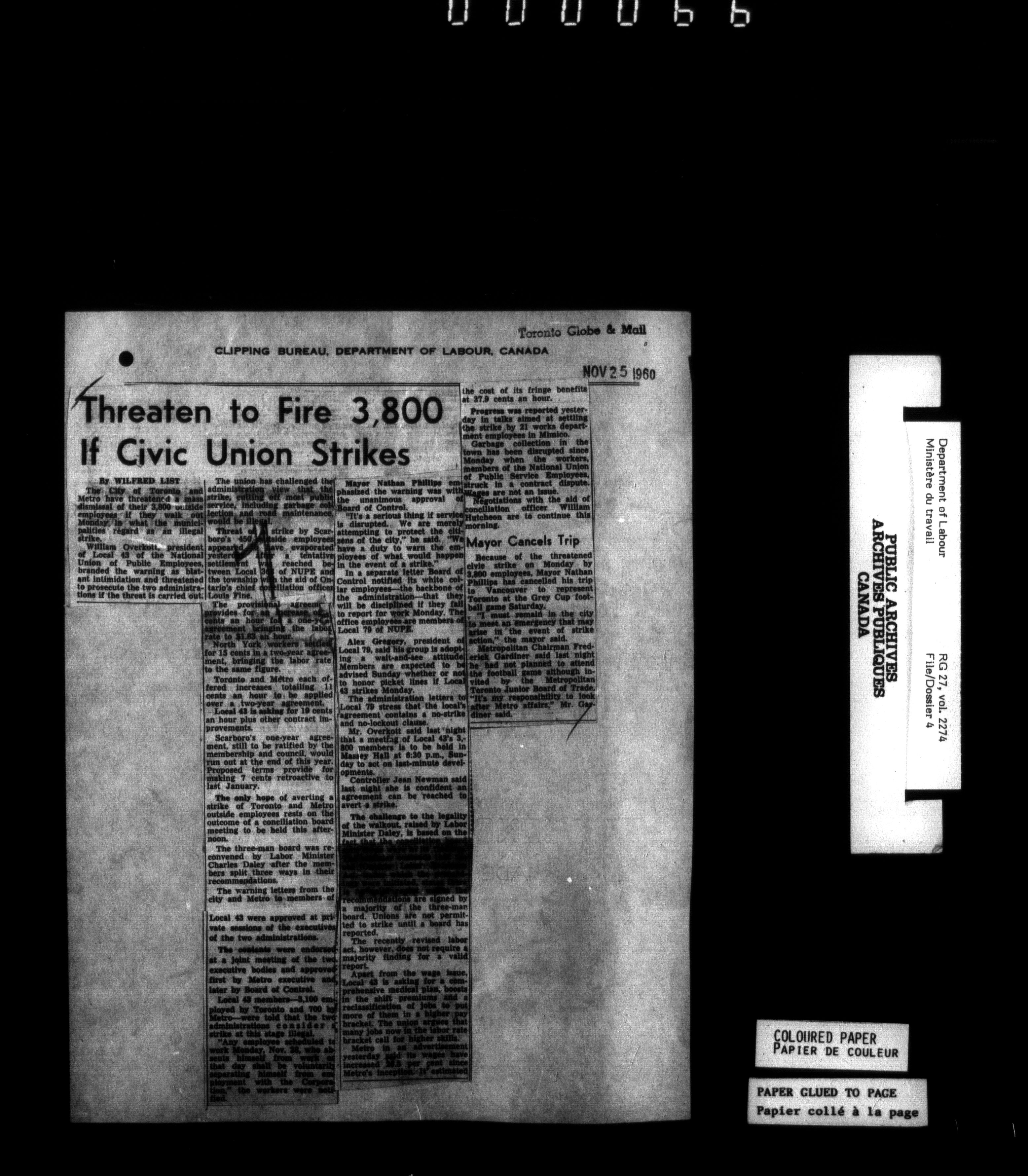Department of Labour, Economics and Research Branch : Strikes and lockout files - 6183