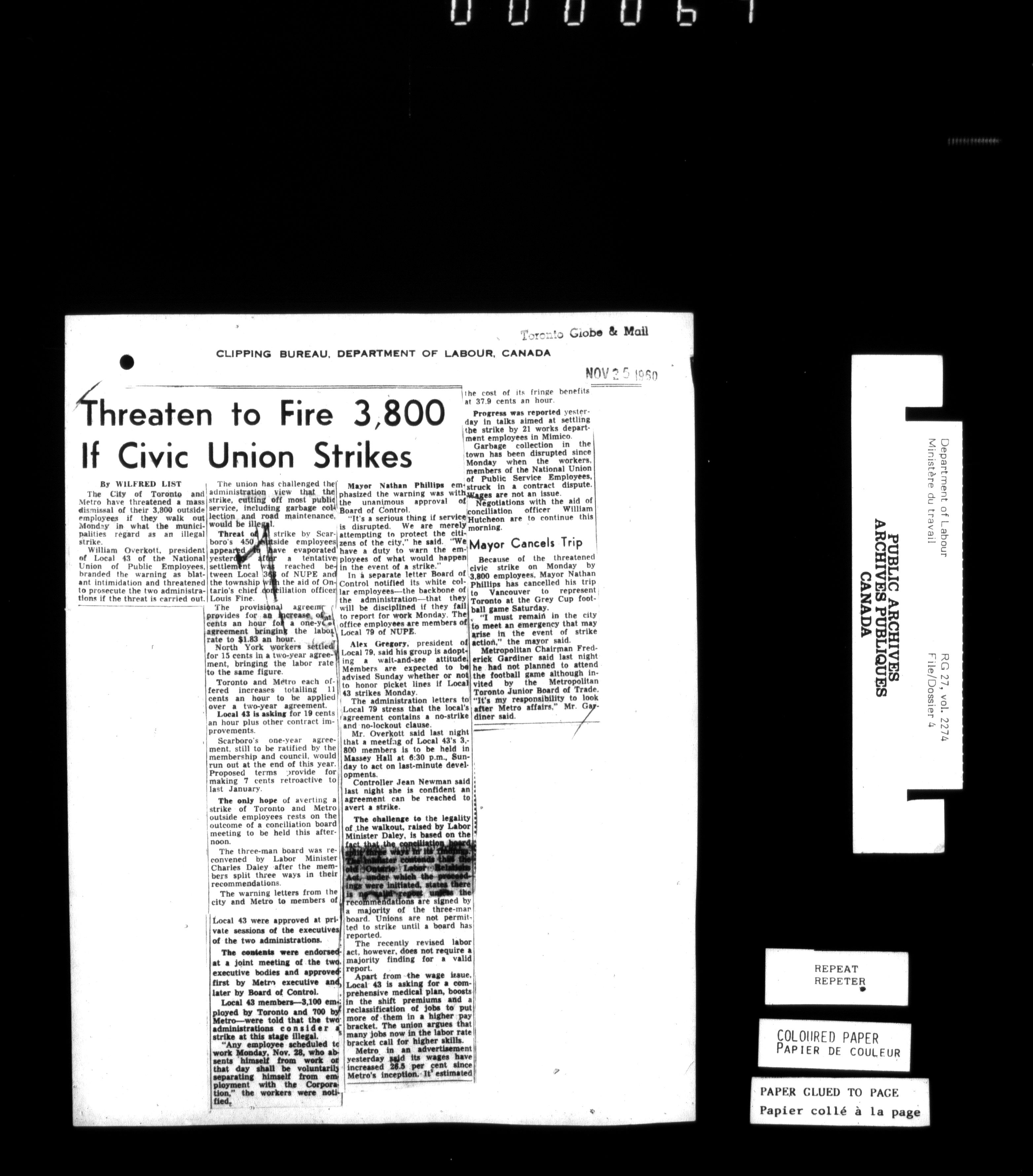 Department of Labour, Economics and Research Branch : Strikes and lockout files - 6183