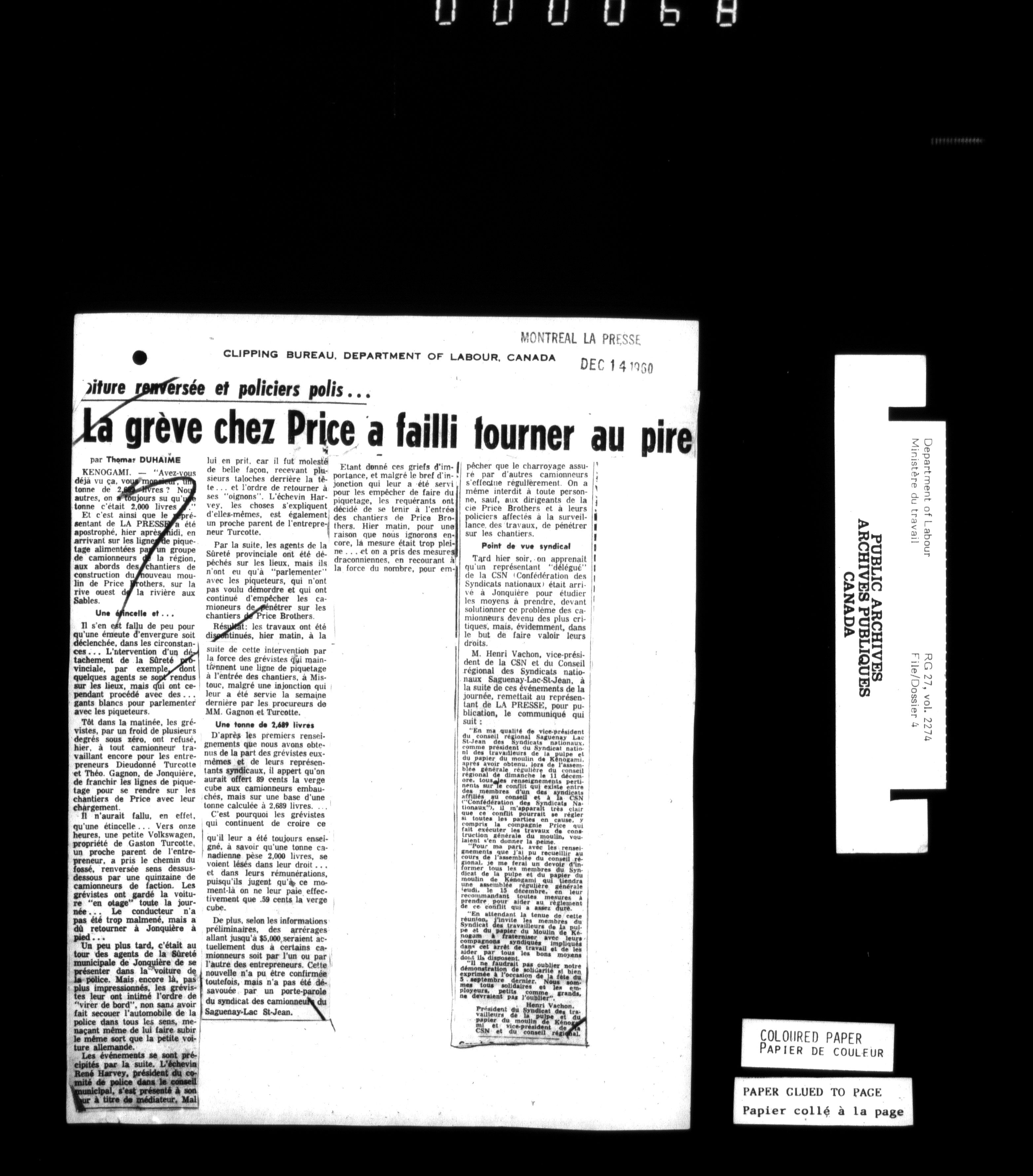 Department of Labour, Economics and Research Branch : Strikes and lockout files - 6183