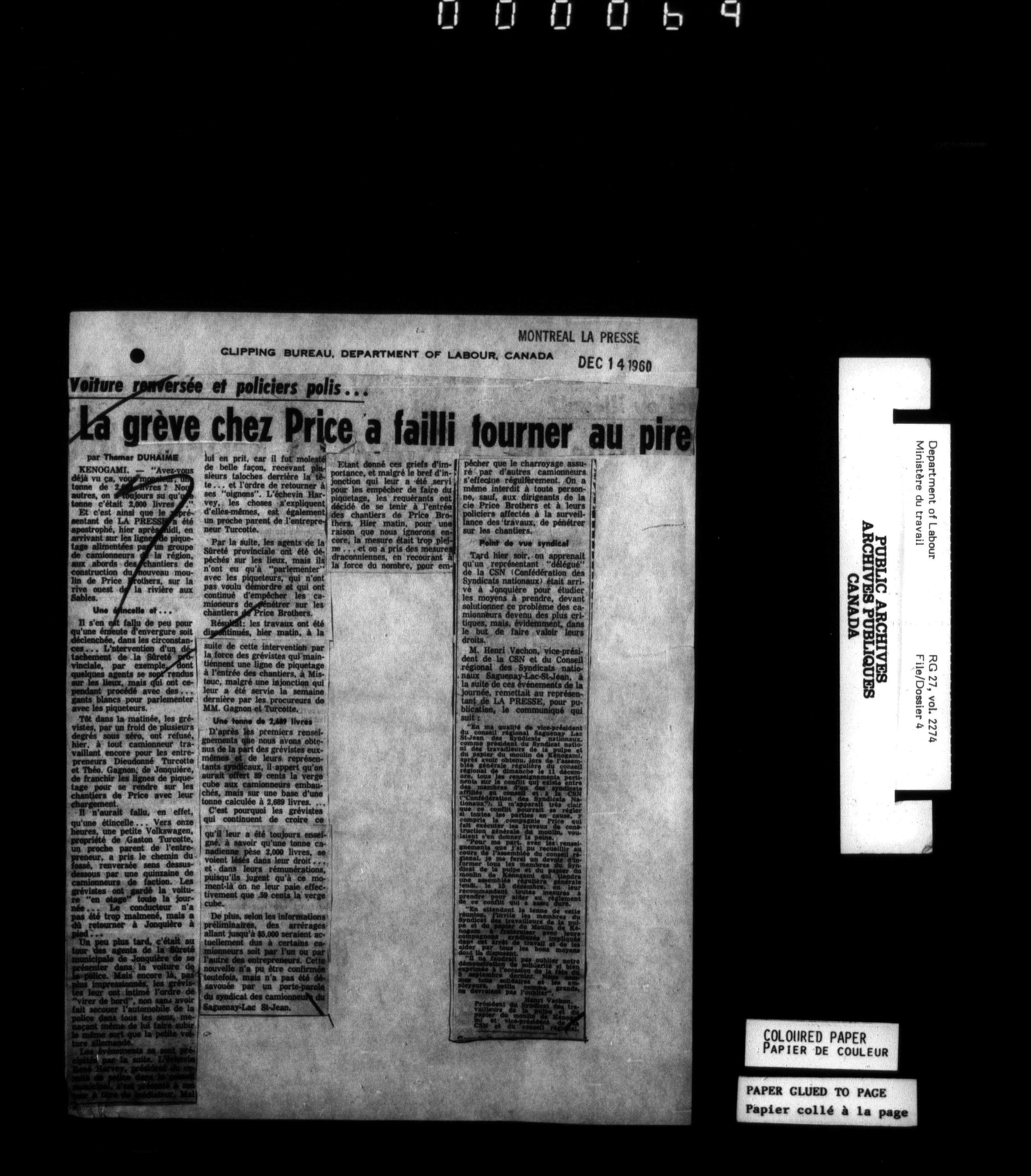 Department of Labour, Economics and Research Branch : Strikes and lockout files - 6183