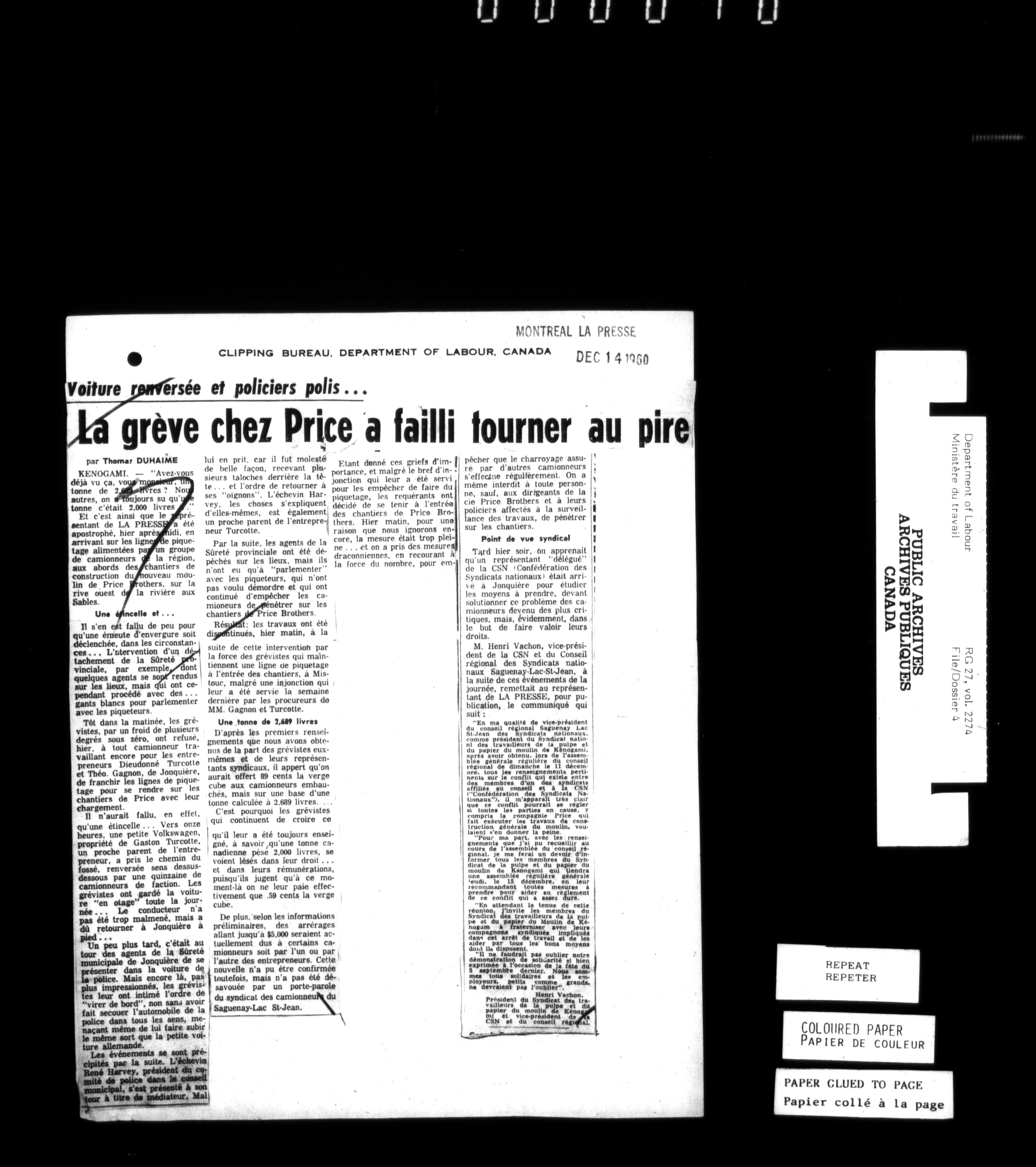 Department of Labour, Economics and Research Branch : Strikes and lockout files - 6183