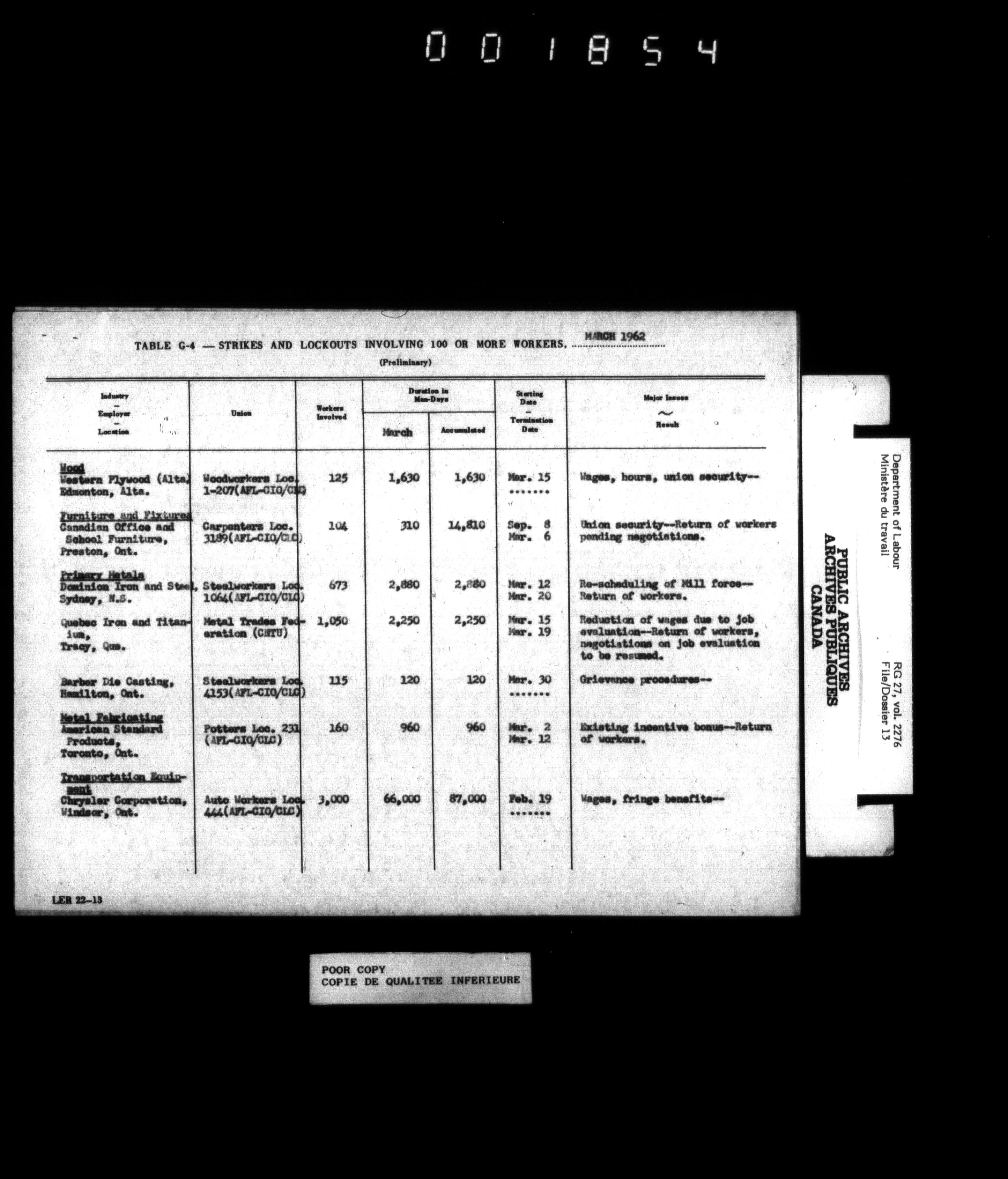 Department of Labour, Economics and Research Branch : Strikes and lockout files - 6184