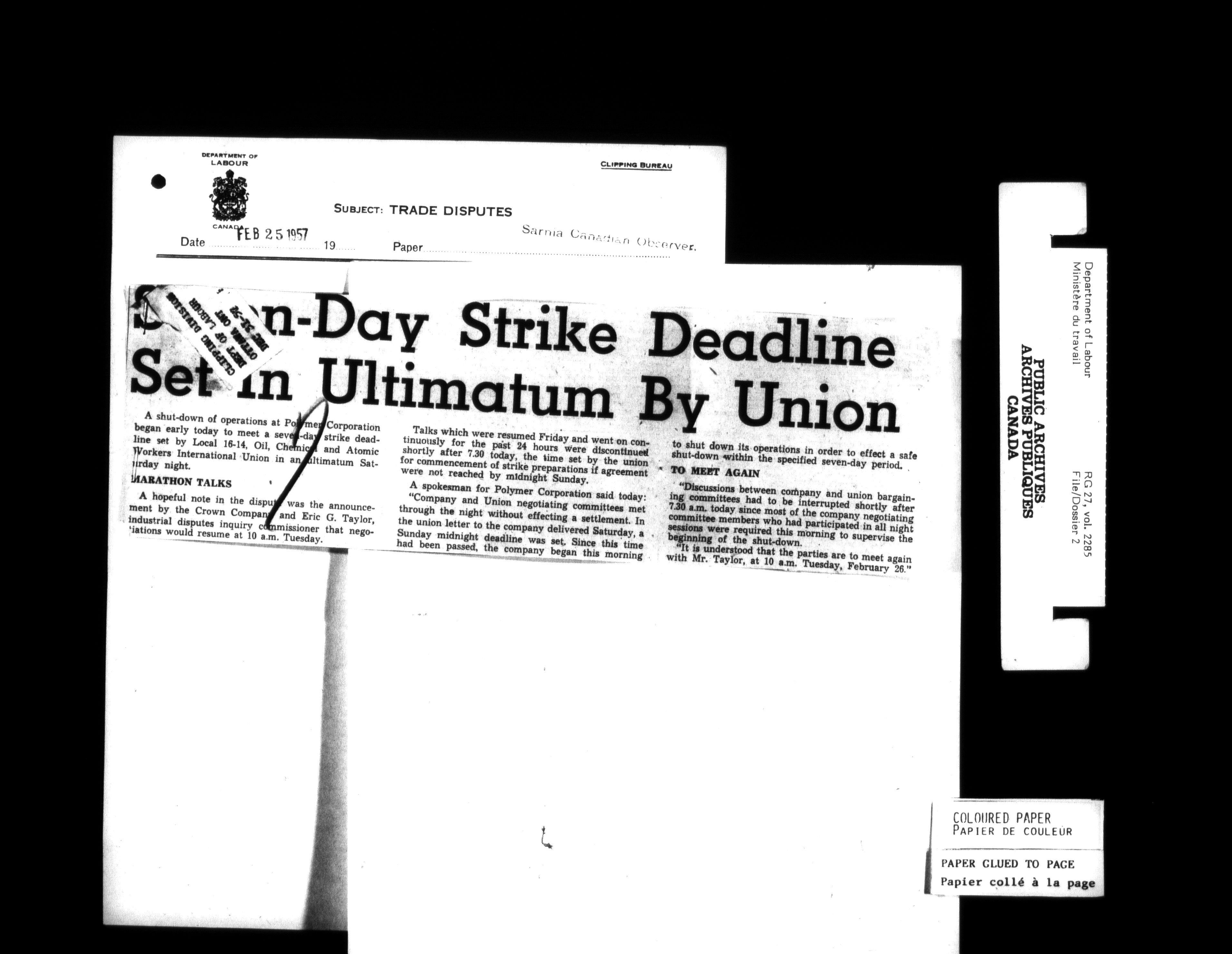 Department of Labour, Economics and Research Branch : Strikes and lockout files - 6191