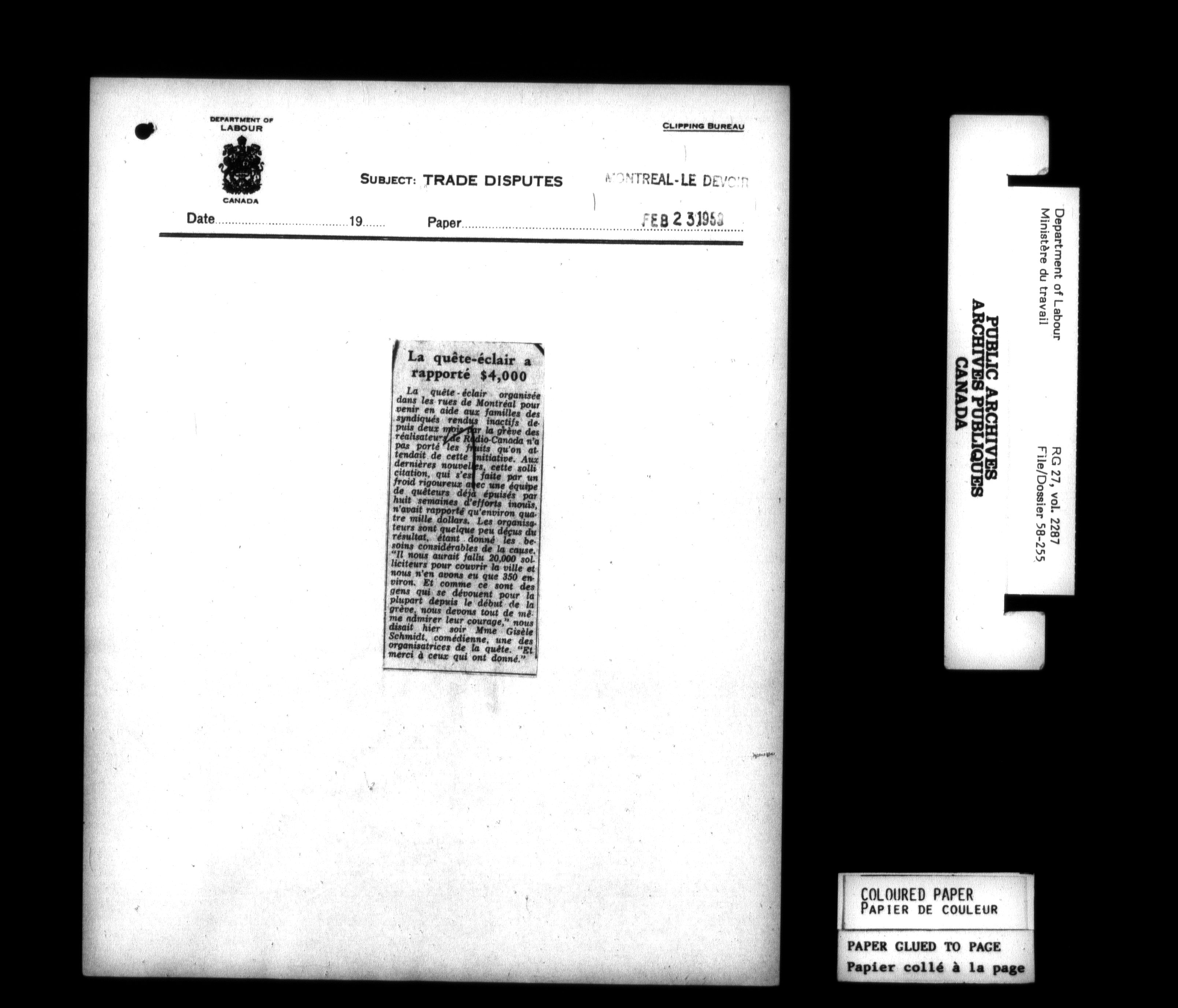 Department of Labour, Economics and Research Branch : Strikes and lockout files - 6192