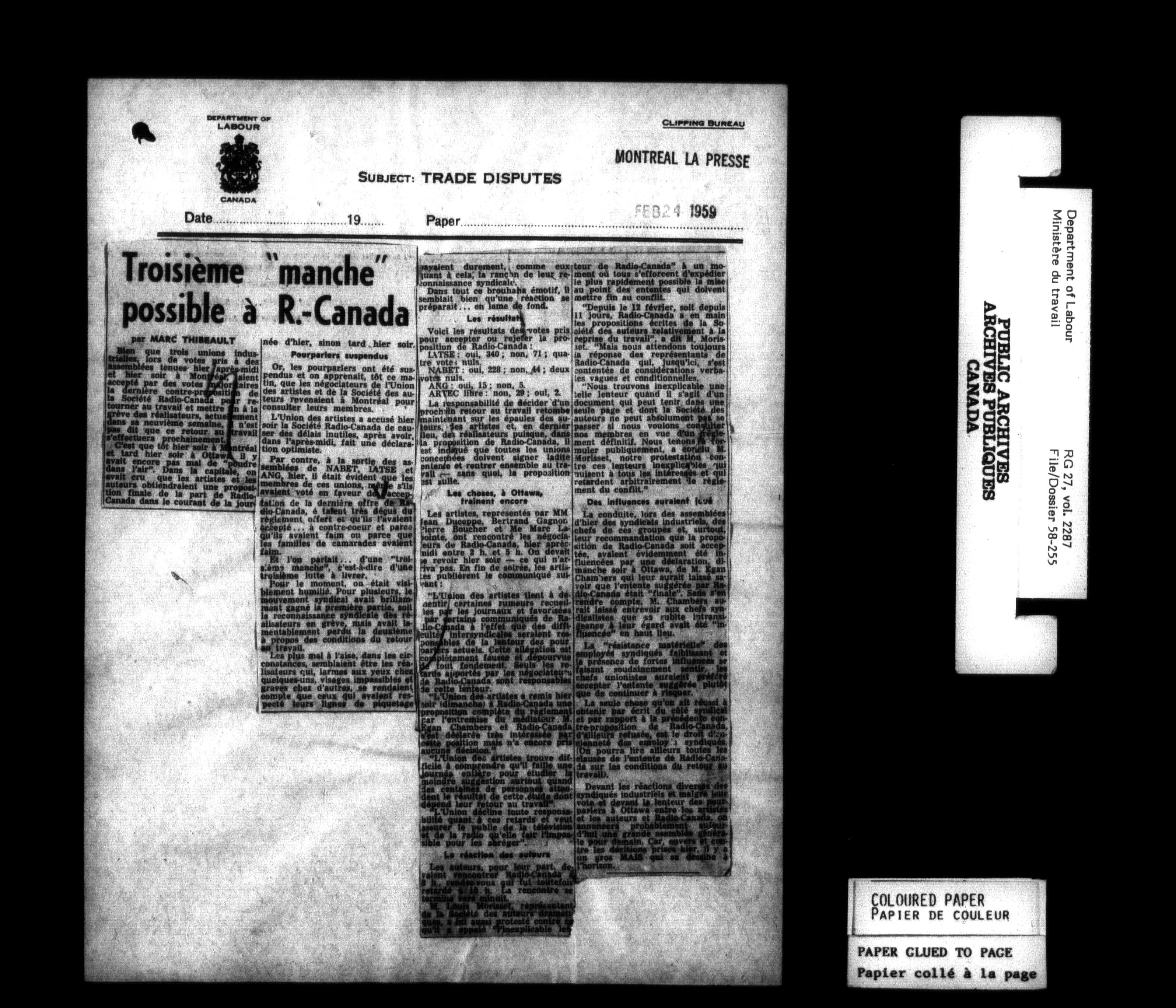 Department of Labour, Economics and Research Branch : Strikes and lockout files - 6192
