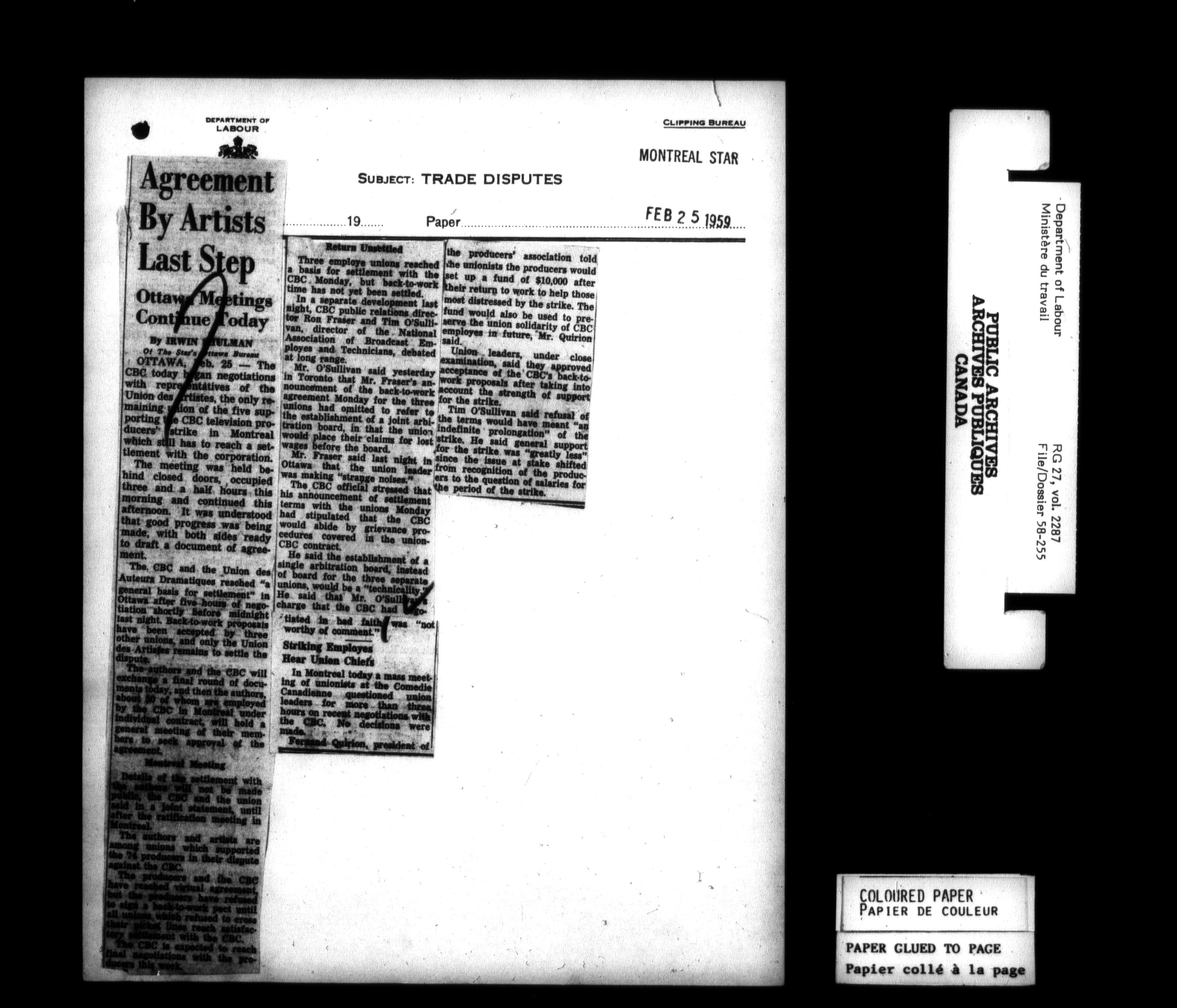 Department of Labour, Economics and Research Branch : Strikes and lockout files - 6192