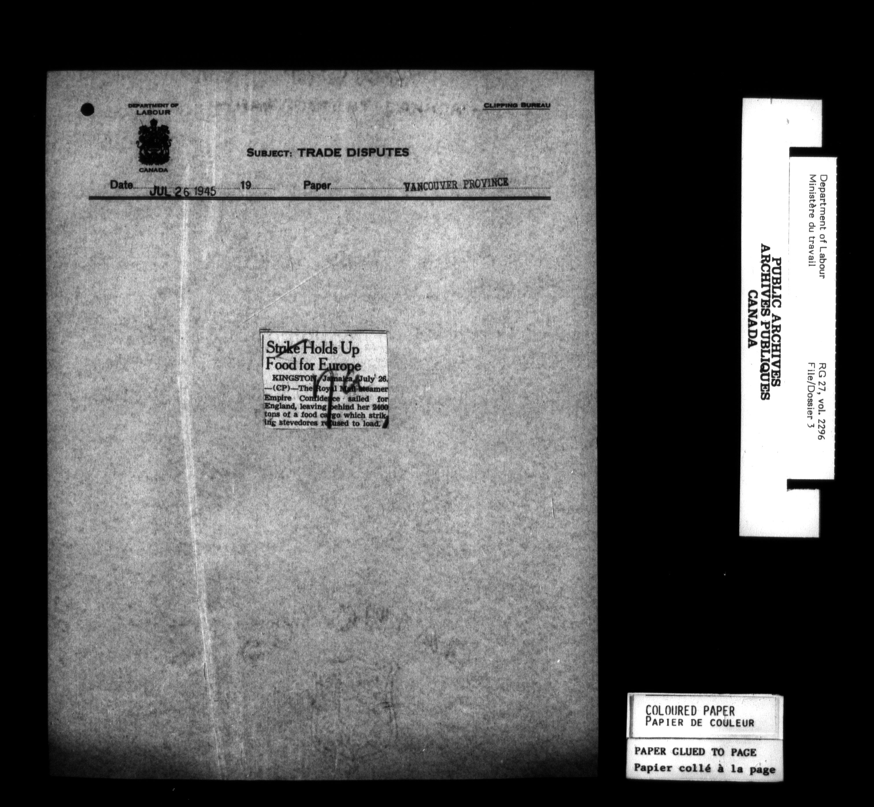 Department of Labour, Economics and Research Branch : Strikes and lockout files : T-6196