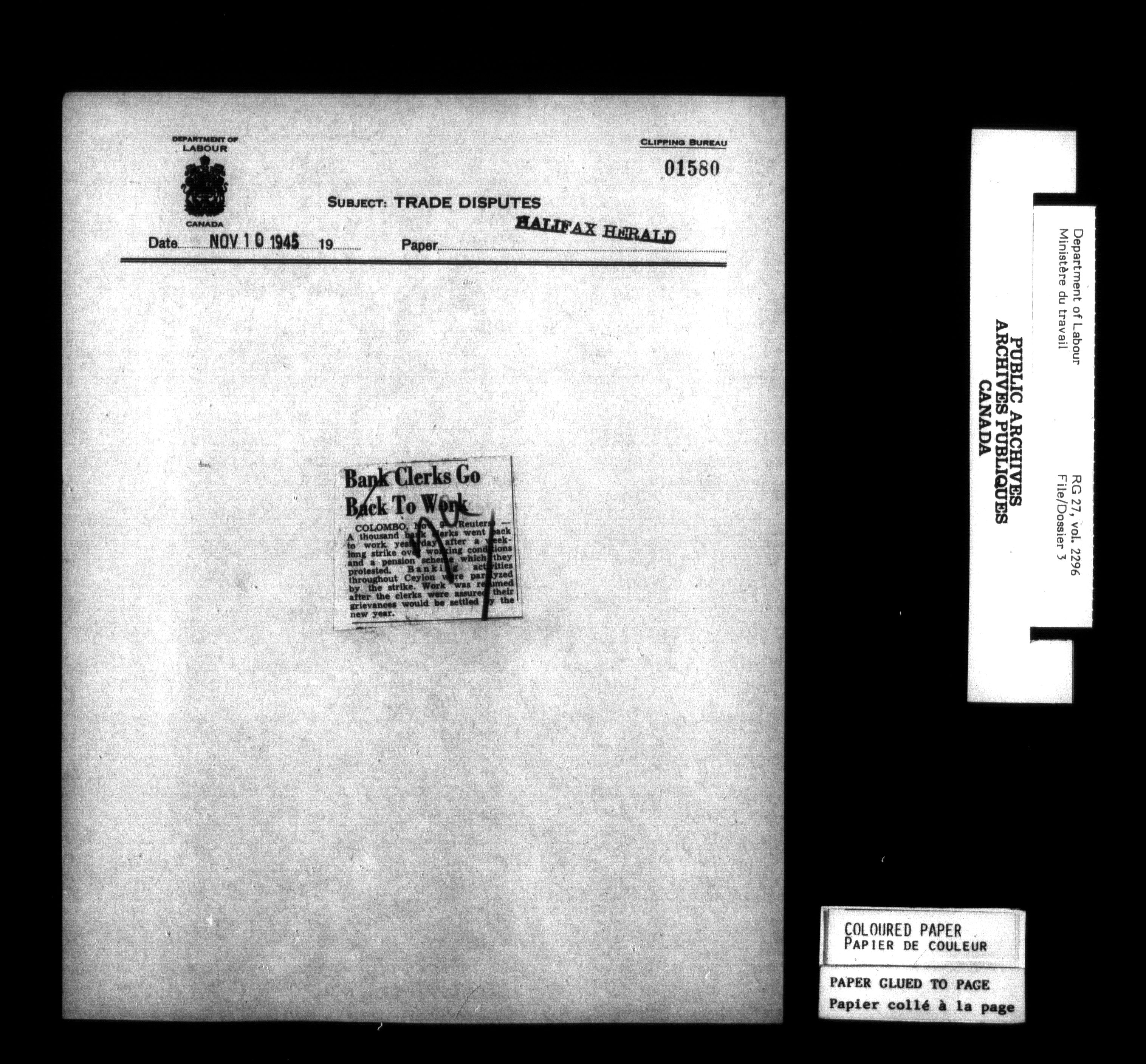 Department of Labour, Economics and Research Branch : Strikes and lockout files - 6196