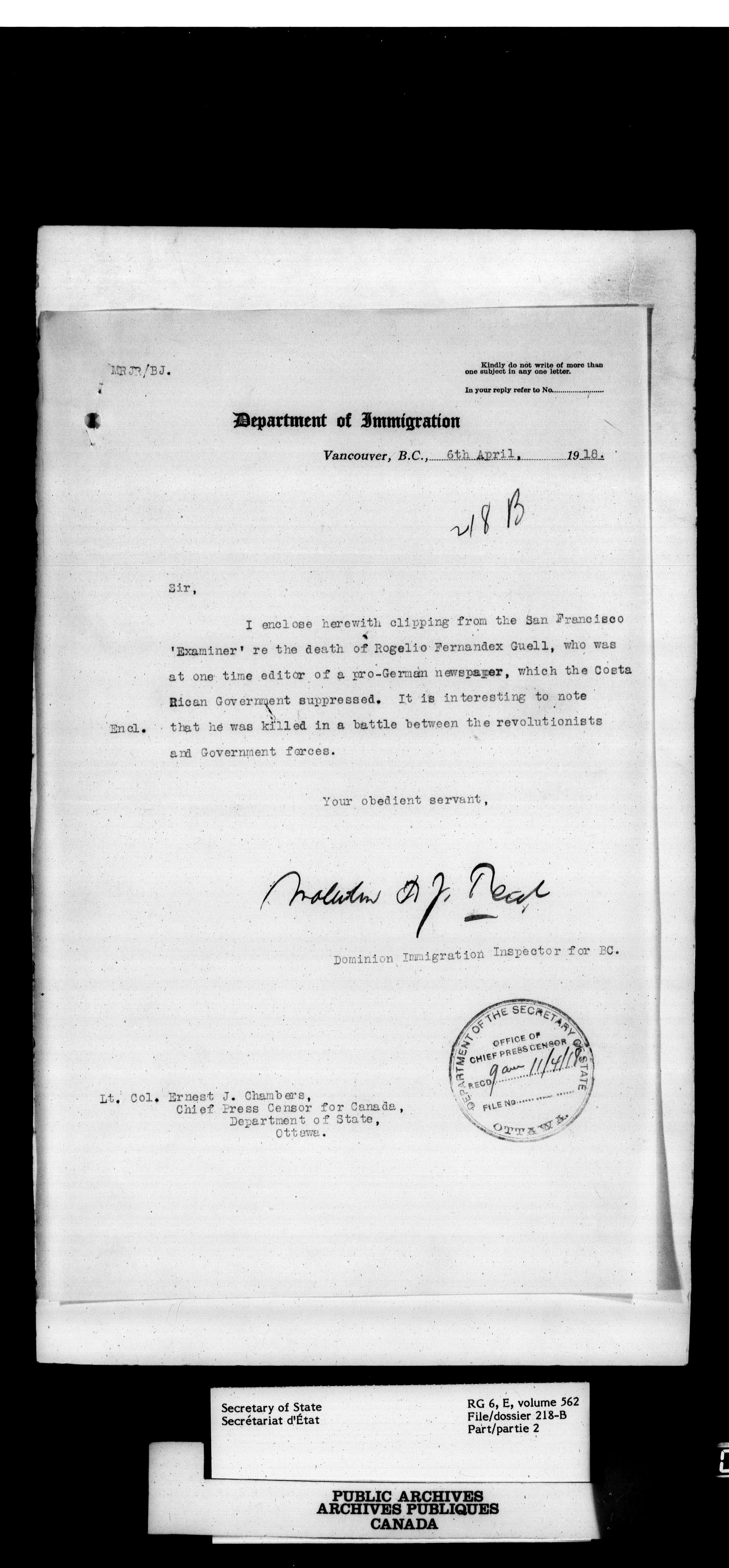 Secretary of State : Chief Press Censor, 1915-1920 - 62