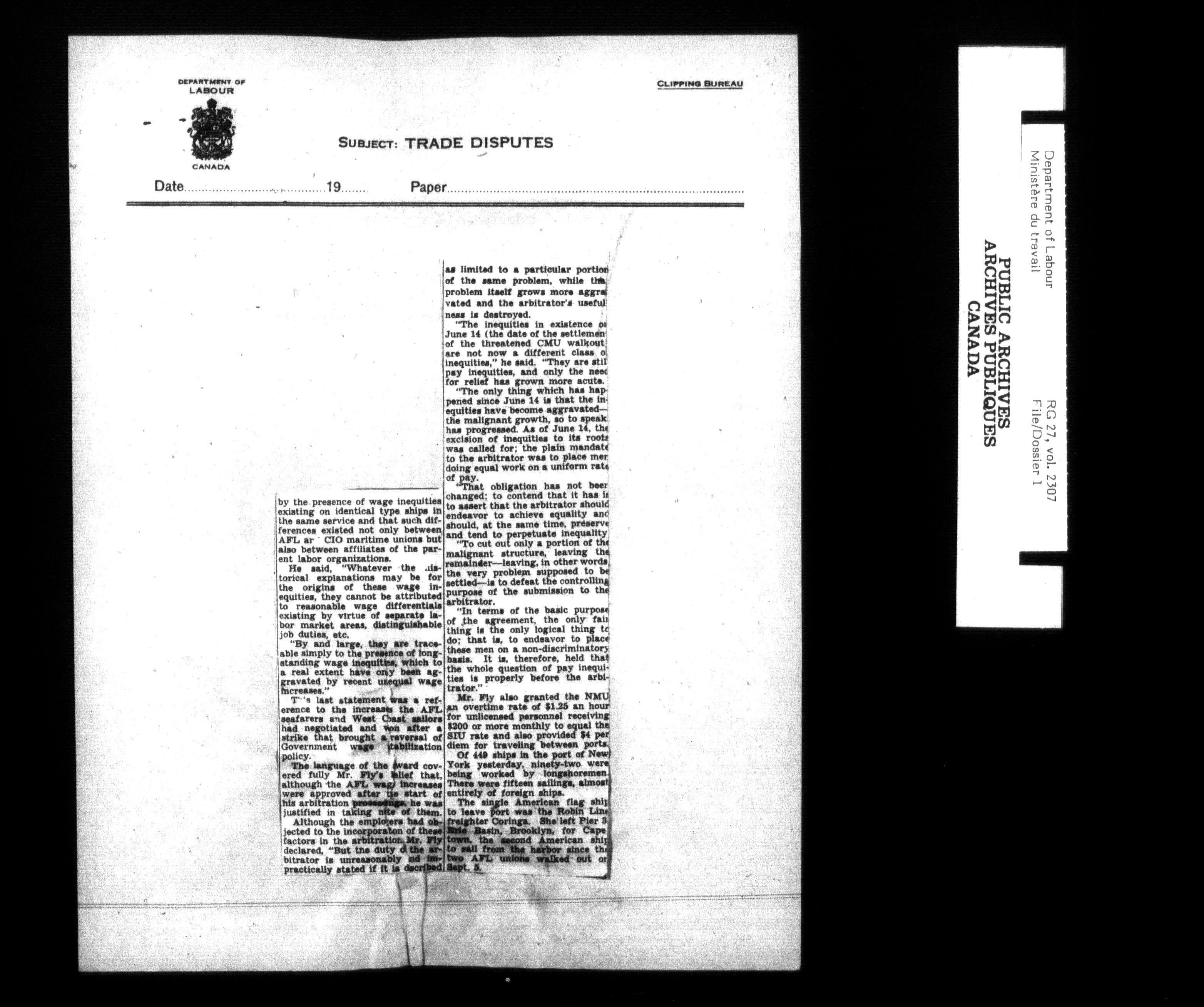 Department of Labour, Economics and Research Branch : Strikes and lockout files - 6201