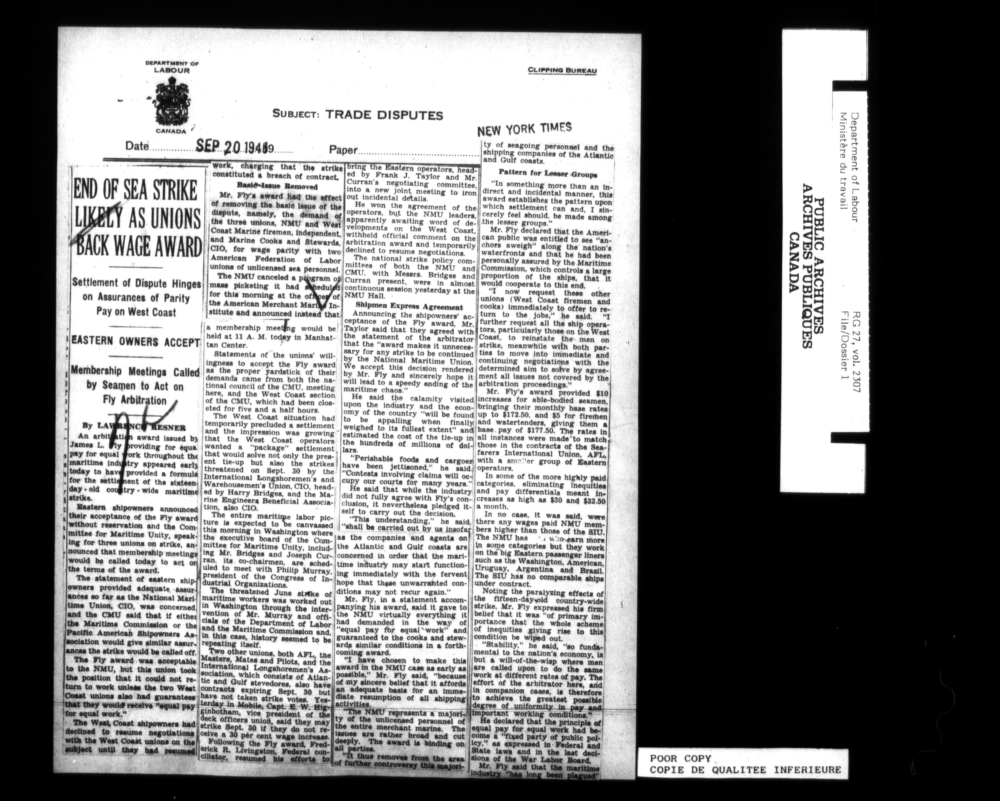 Department of Labour, Economics and Research Branch : Strikes and lockout files - 6201