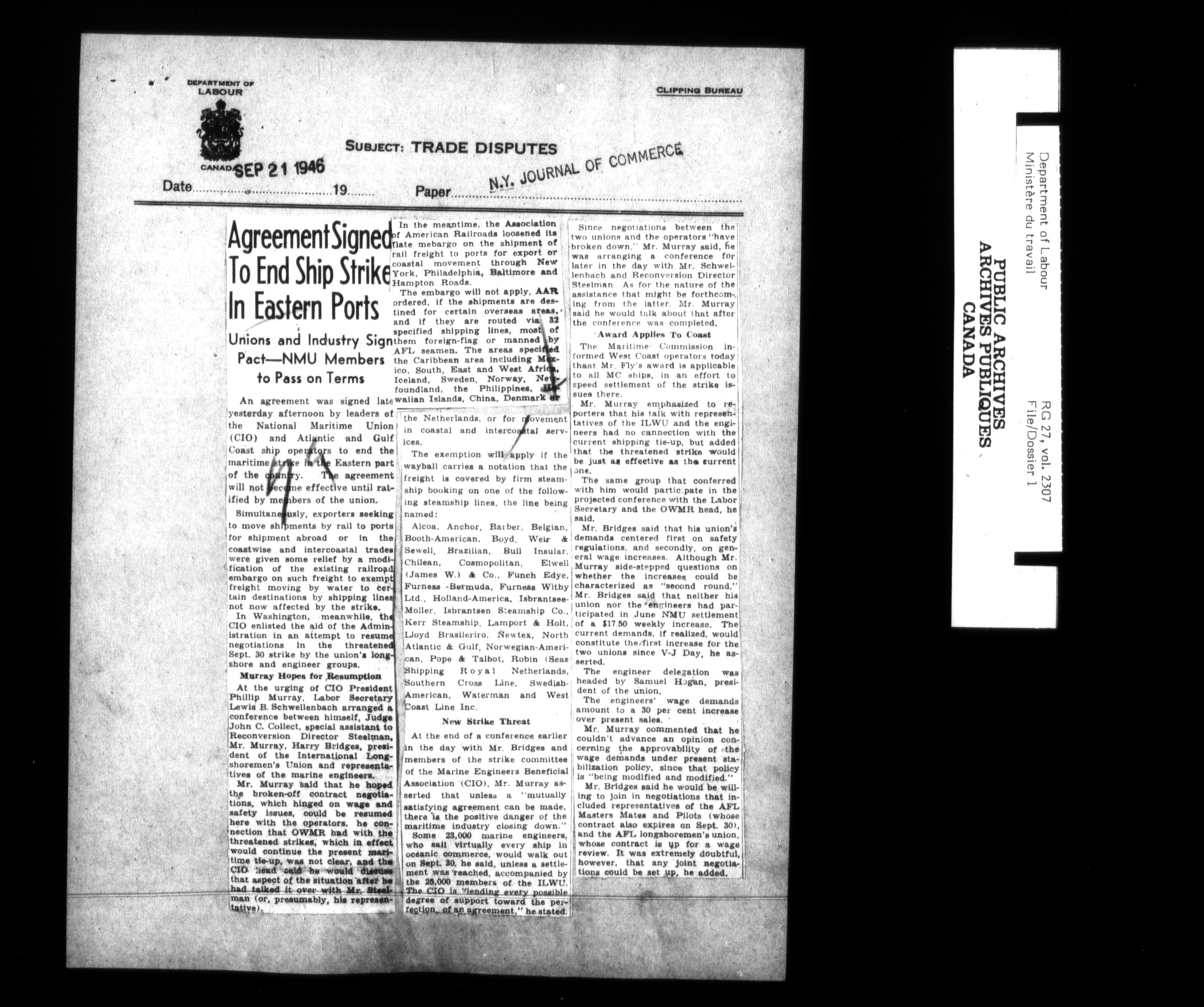 Department of Labour, Economics and Research Branch : Strikes and lockout files - 6201