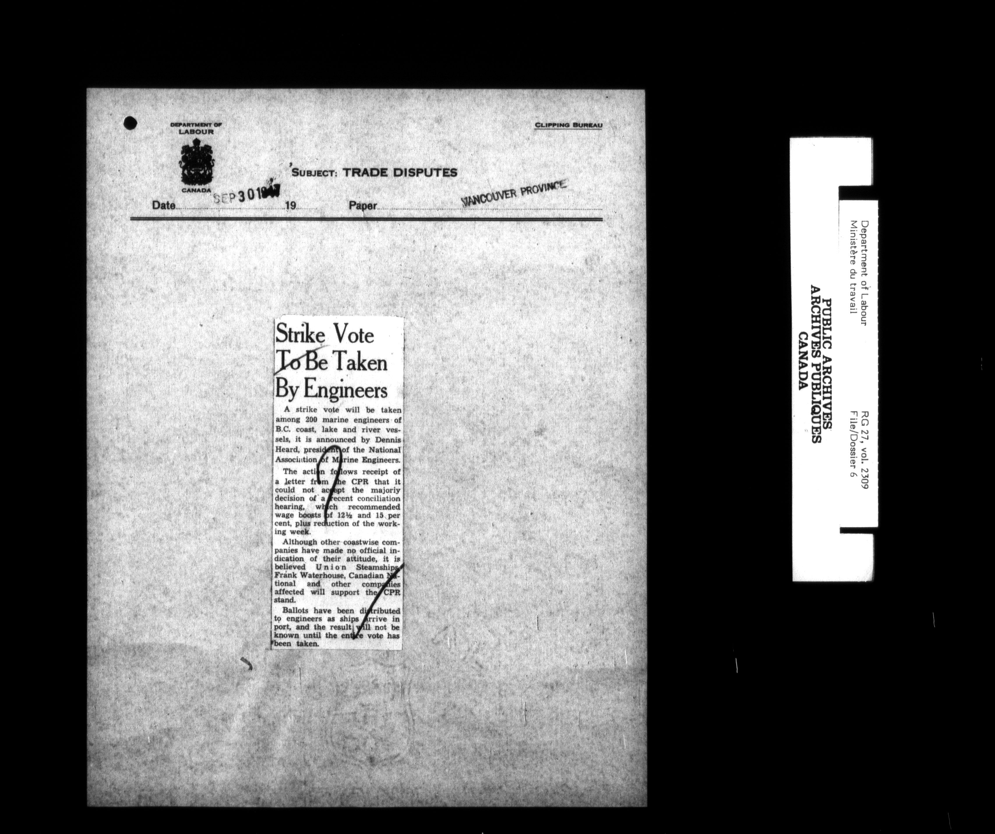Department of Labour, Economics and Research Branch : Strikes and lockout files - 6203