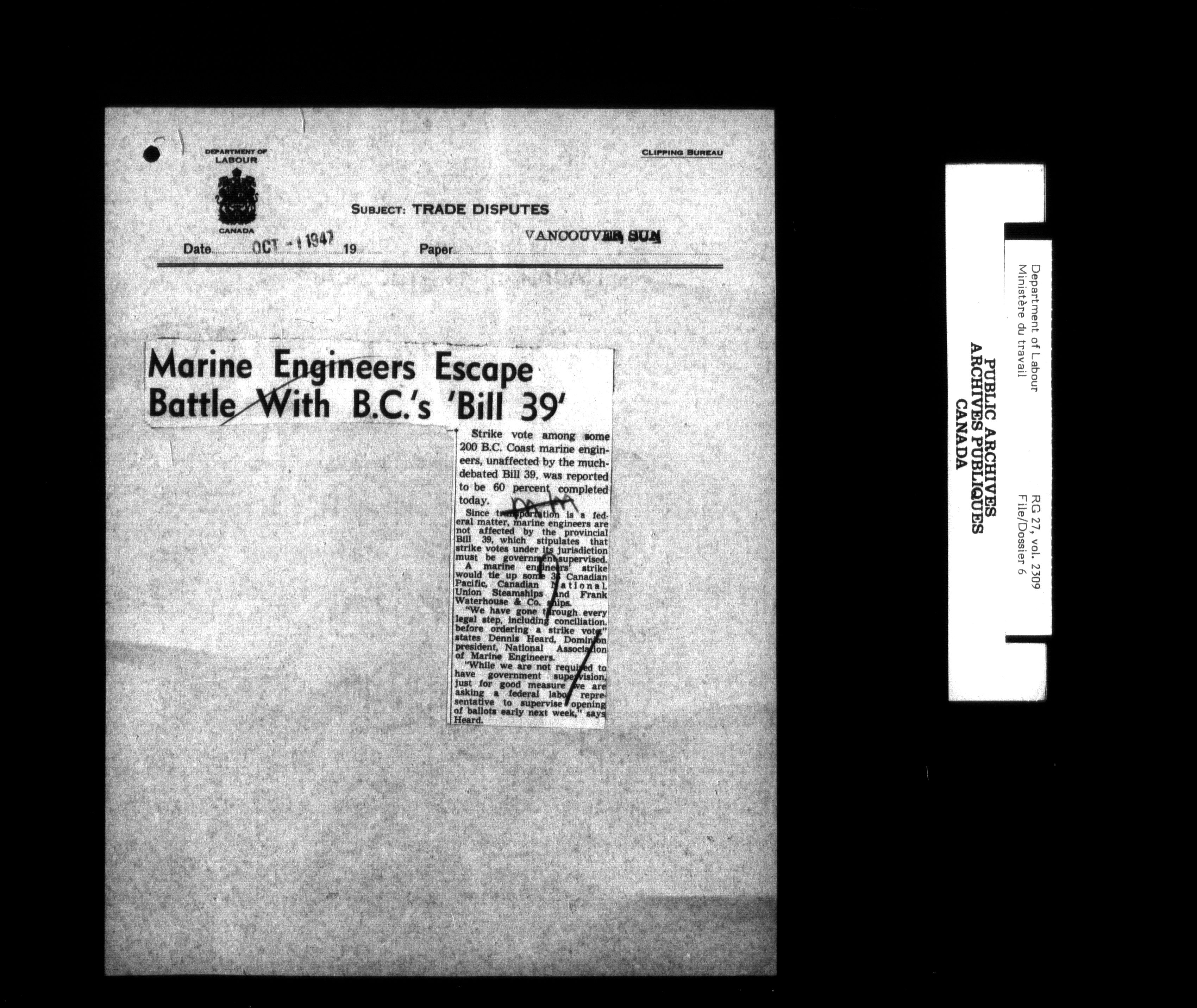 Department of Labour, Economics and Research Branch : Strikes and lockout files - 6203