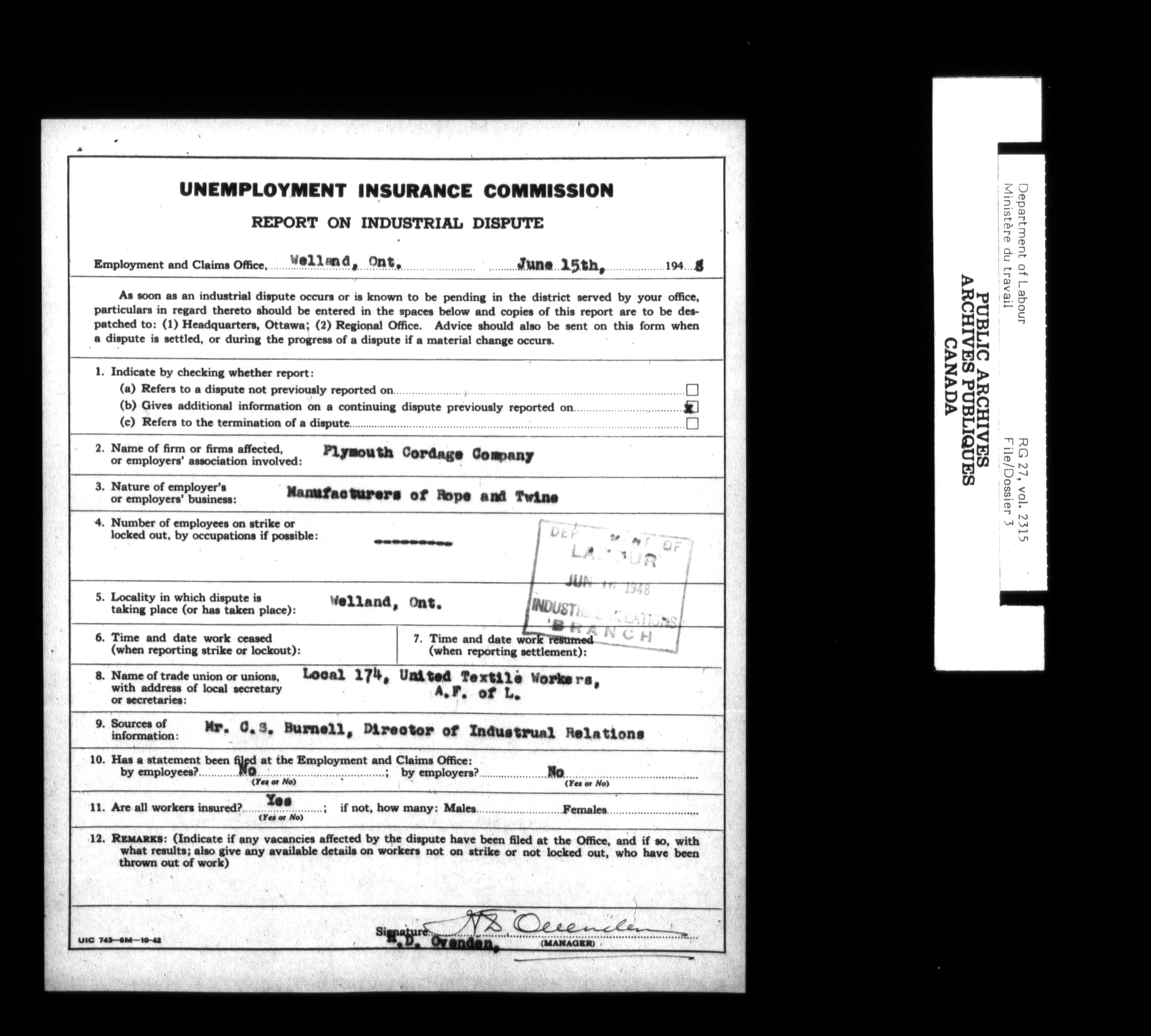 Department of Labour, Economics and Research Branch : Strikes and lockout files : T-6204