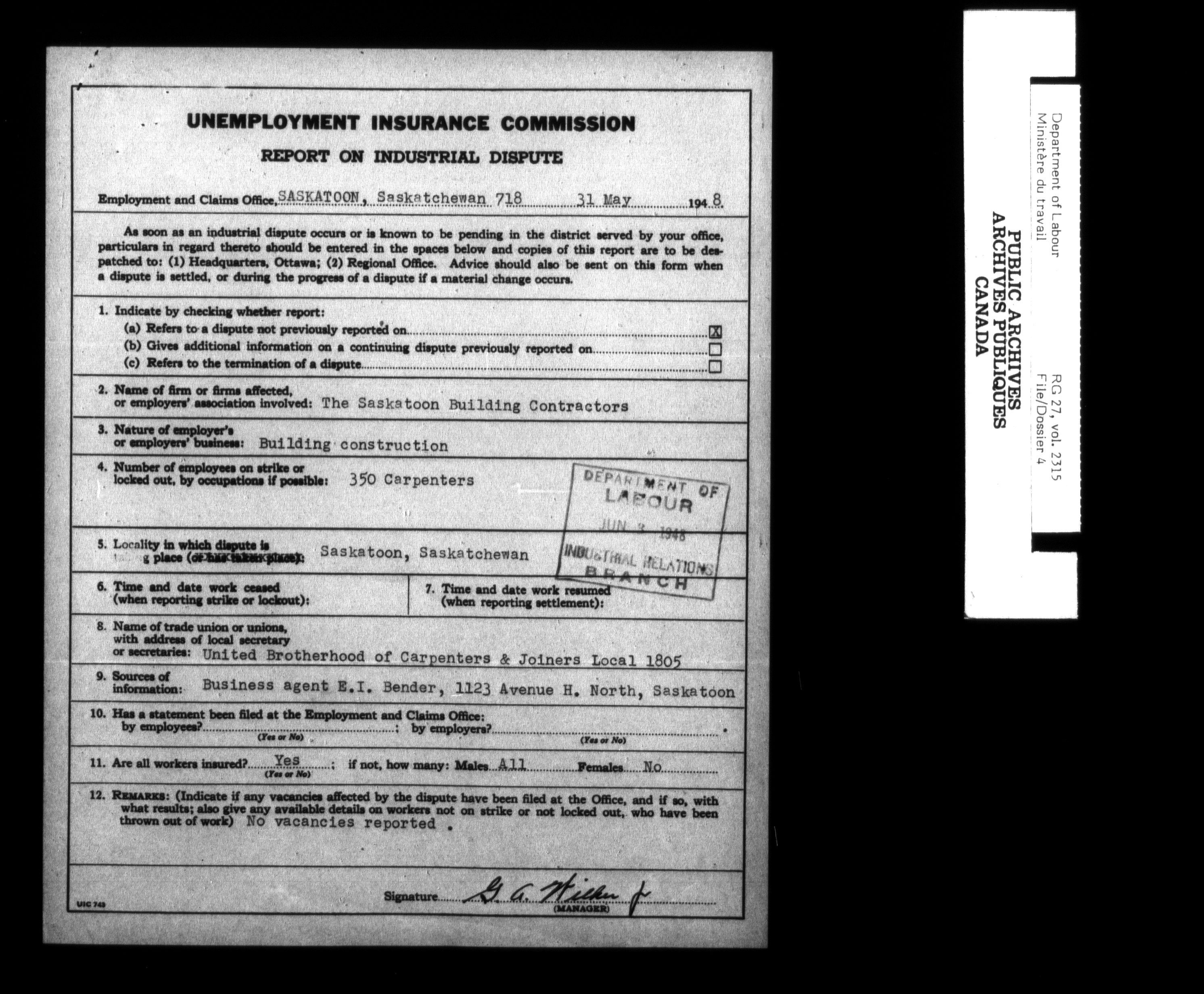 Department of Labour, Economics and Research Branch : Strikes and lockout files - 6205