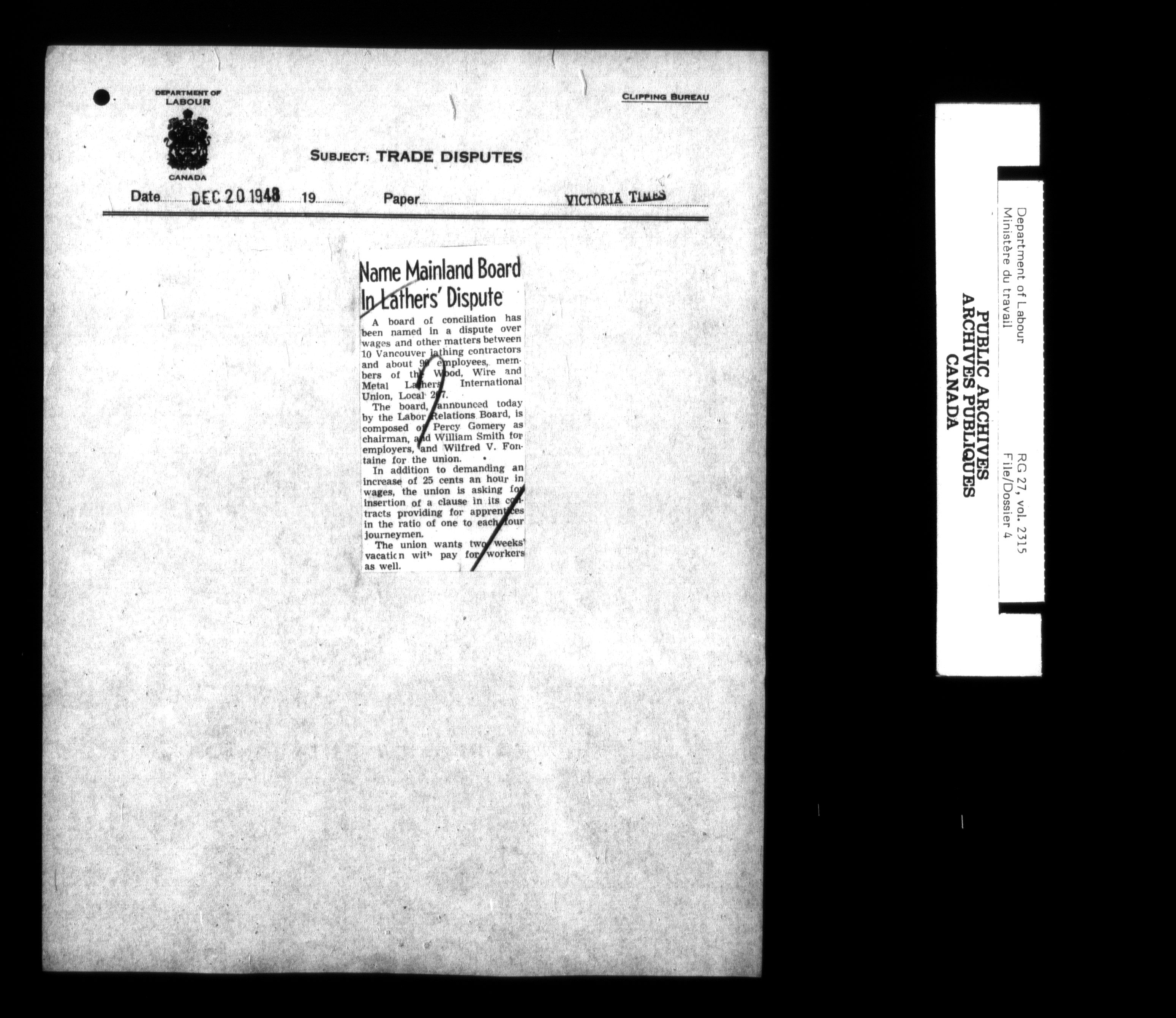Department of Labour, Economics and Research Branch : Strikes and lockout files - 6205