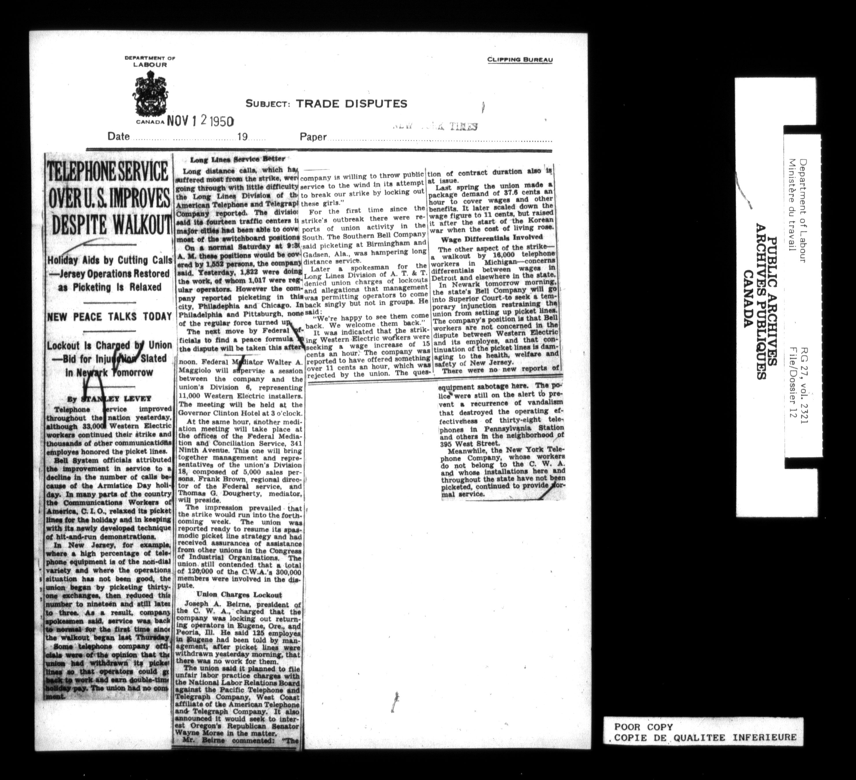 Department of Labour, Economics and Research Branch : Strikes and lockout files : T-6207