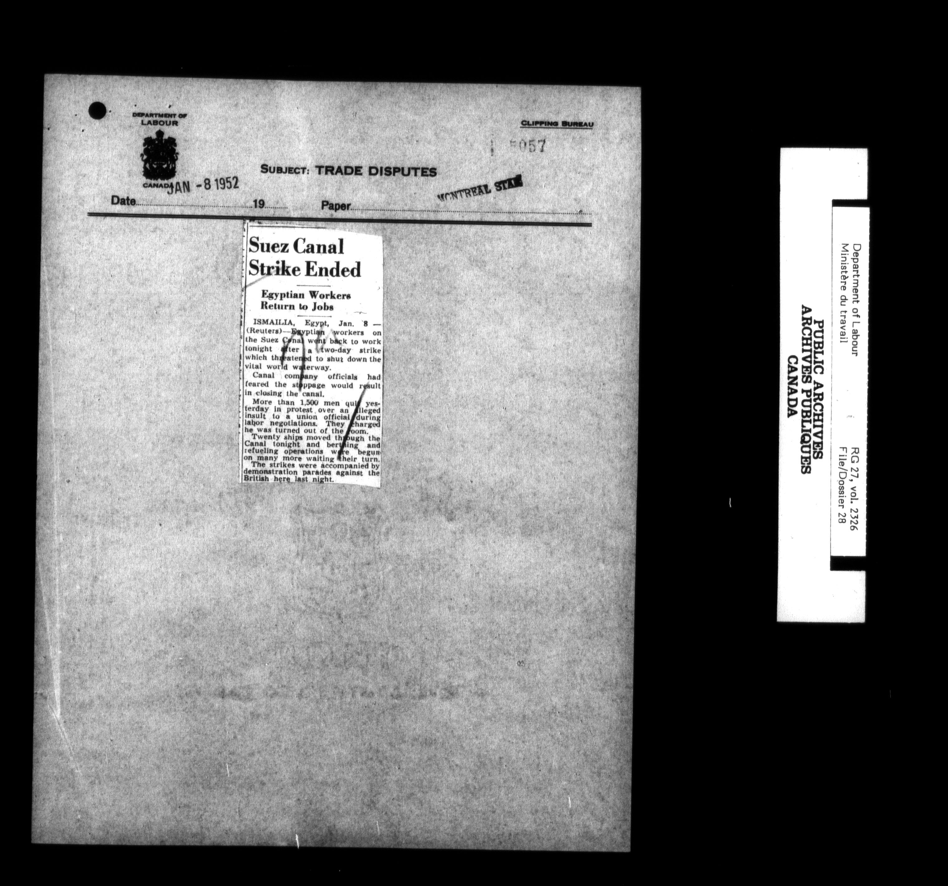 Department of Labour, Economics and Research Branch : Strikes and lockout files - 6210